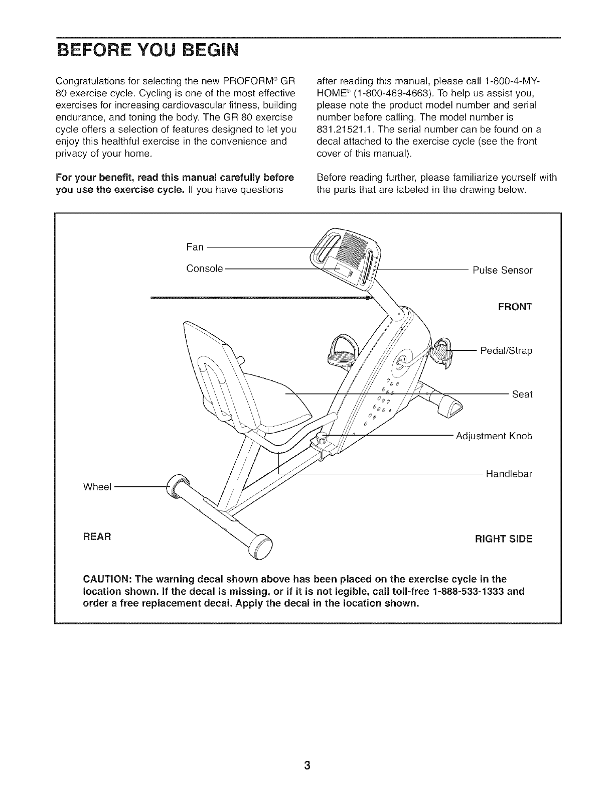 PROFORM Cycle Manual L0702396 PROFORM Cycle Owner's Manual, PROFORM Cycle installation guides