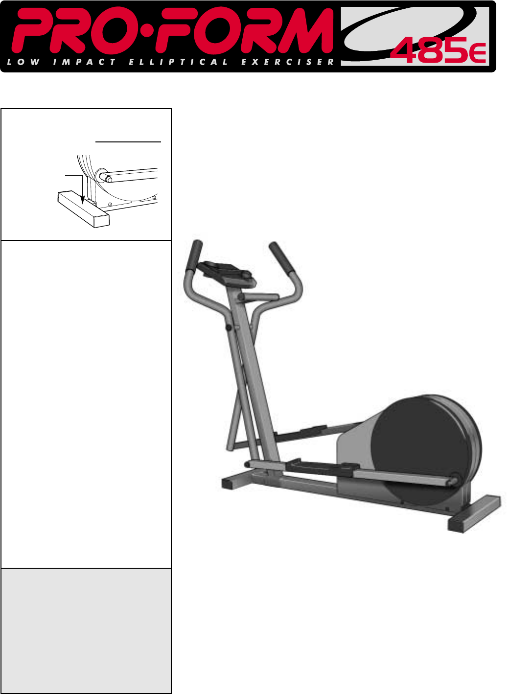 Proform Pcel87075 485E Elliptical Users Manual