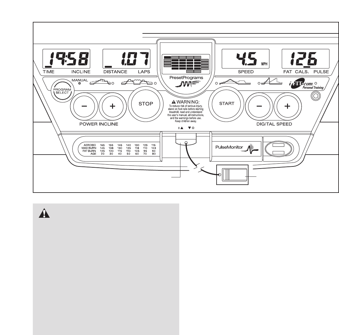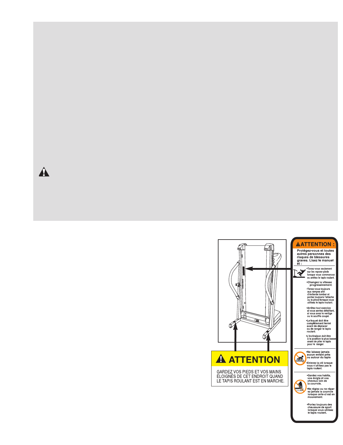 sport. N’utilisez jamais le tapis roulant les pieds