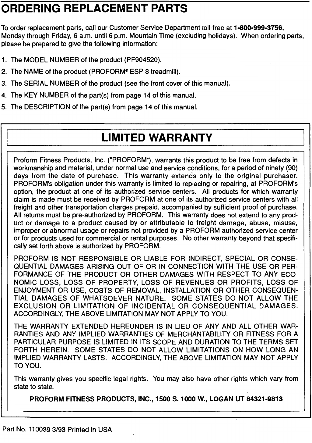 Proform Pf904520 Esp 8 Treadmill Users Manual