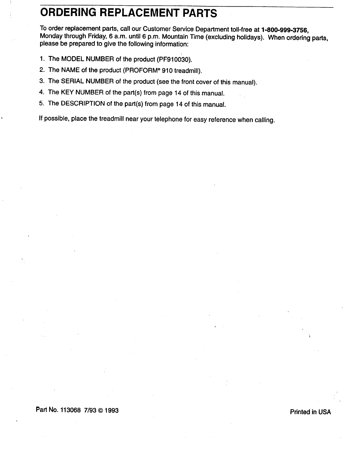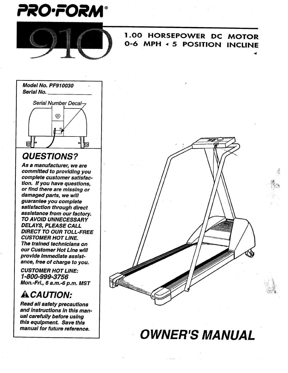 Proform Pf910030 910 Treadmill Users Manual