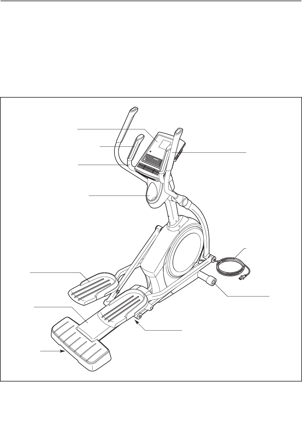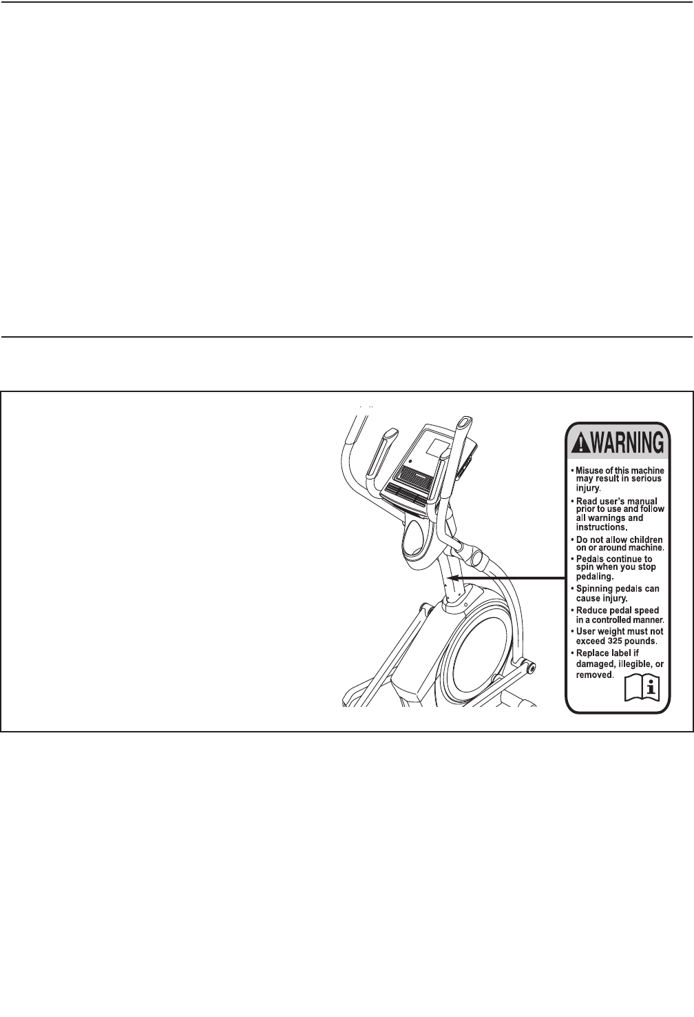entrenedor elíptico, antes de utilizarla. ICON no asume ninguna responsabilidad por lesiones perso-