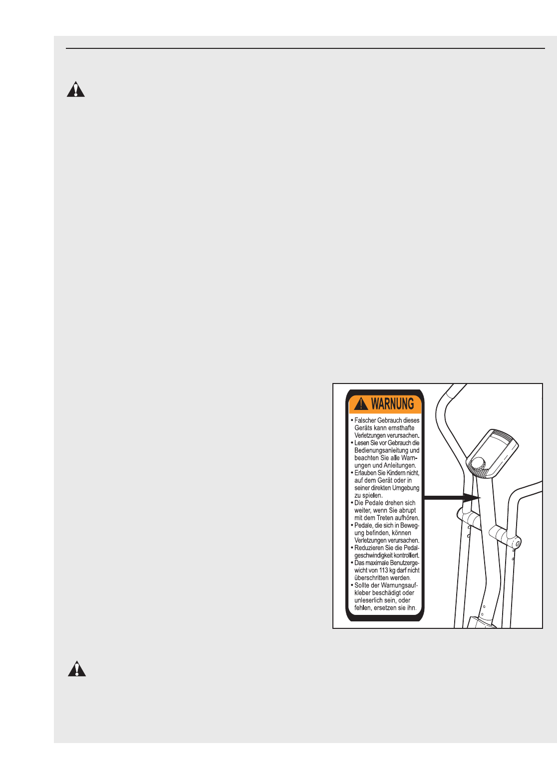gen Vorsichtsmaßnahmen bevor Sie den Ellipsentrainer in Benutzung nehmen.