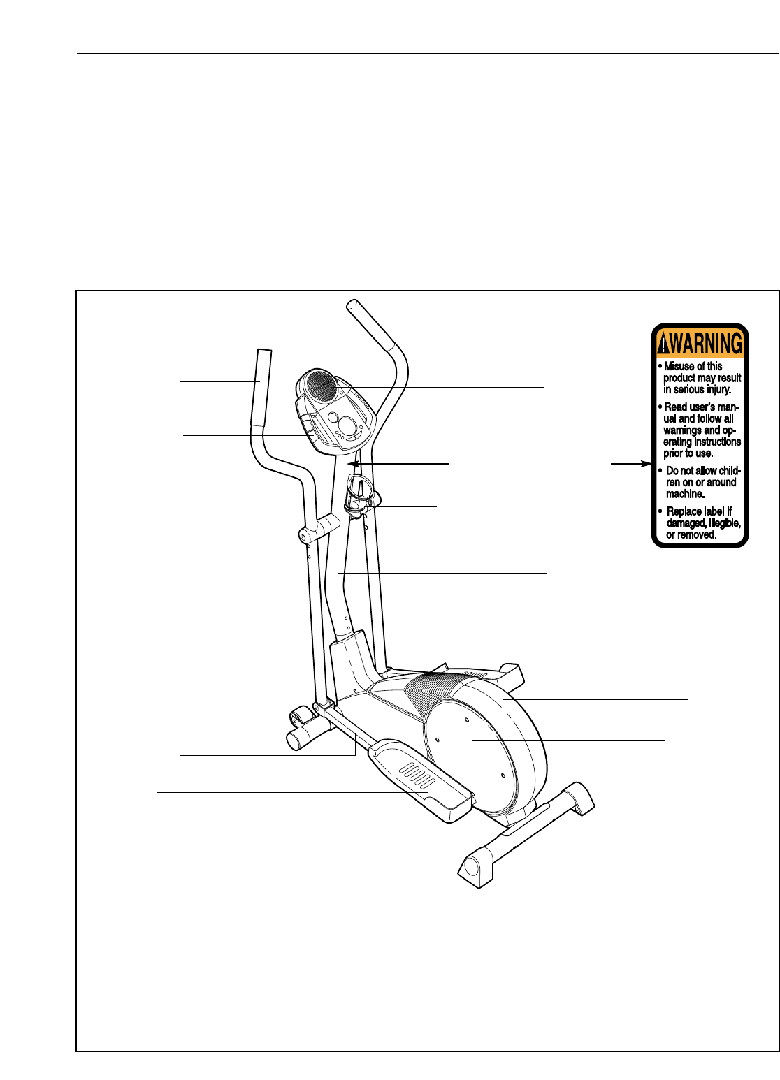 voordat u de elliptische trainer gaat gebruiken om persoonlijk letsel te voorkomen.