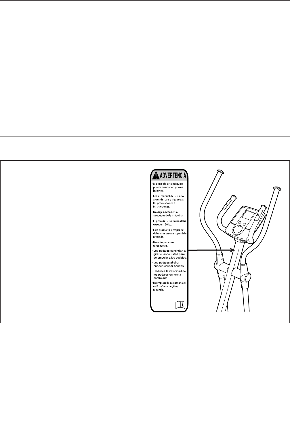 entrenador elíptico antes de utilizarlo. ICON no asume ninguna responsabilidad por lesiones person-