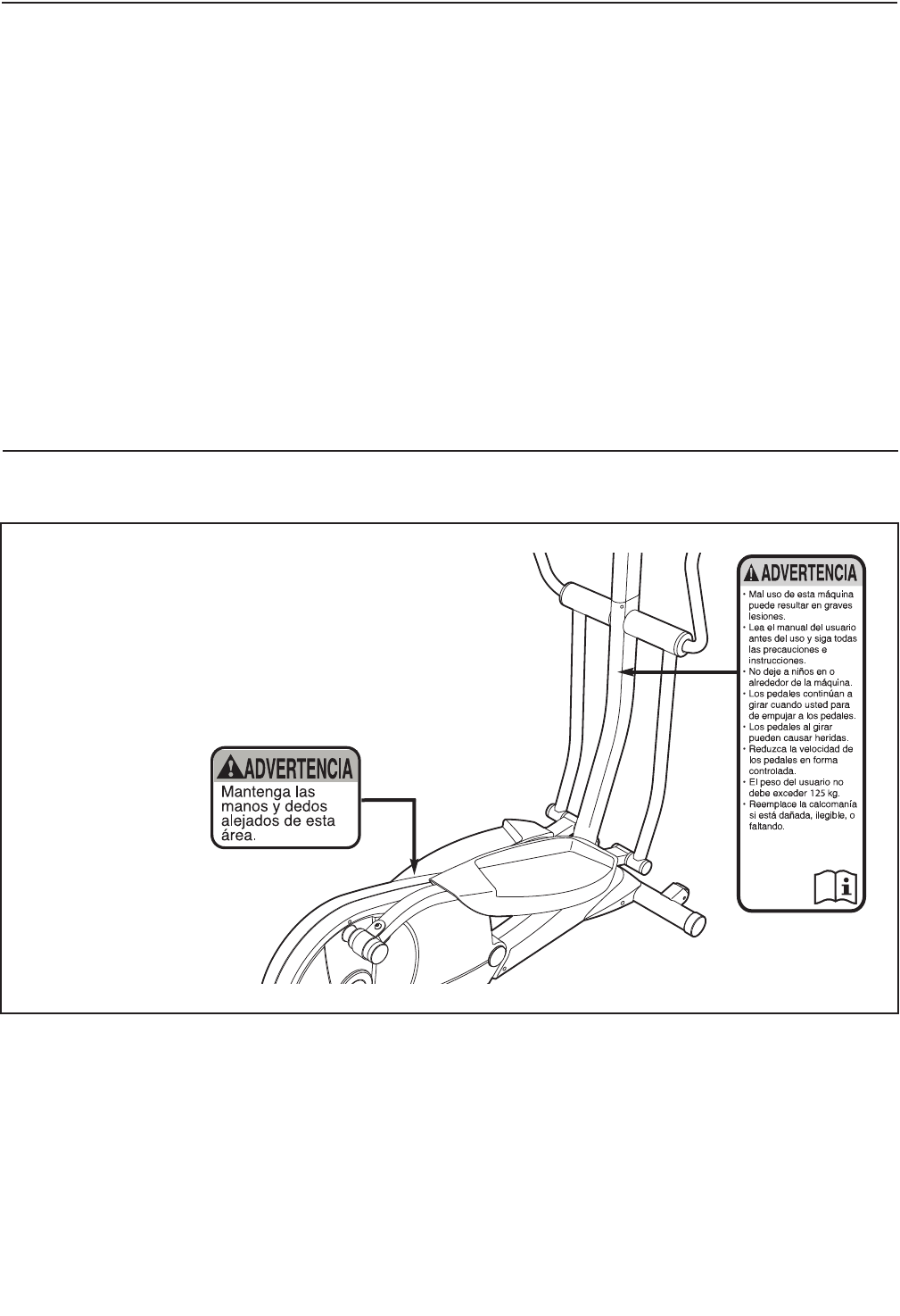entrenador elíptico, antes de utilizarla. ICON no asume ninguna responsabilidad por lesiones per-