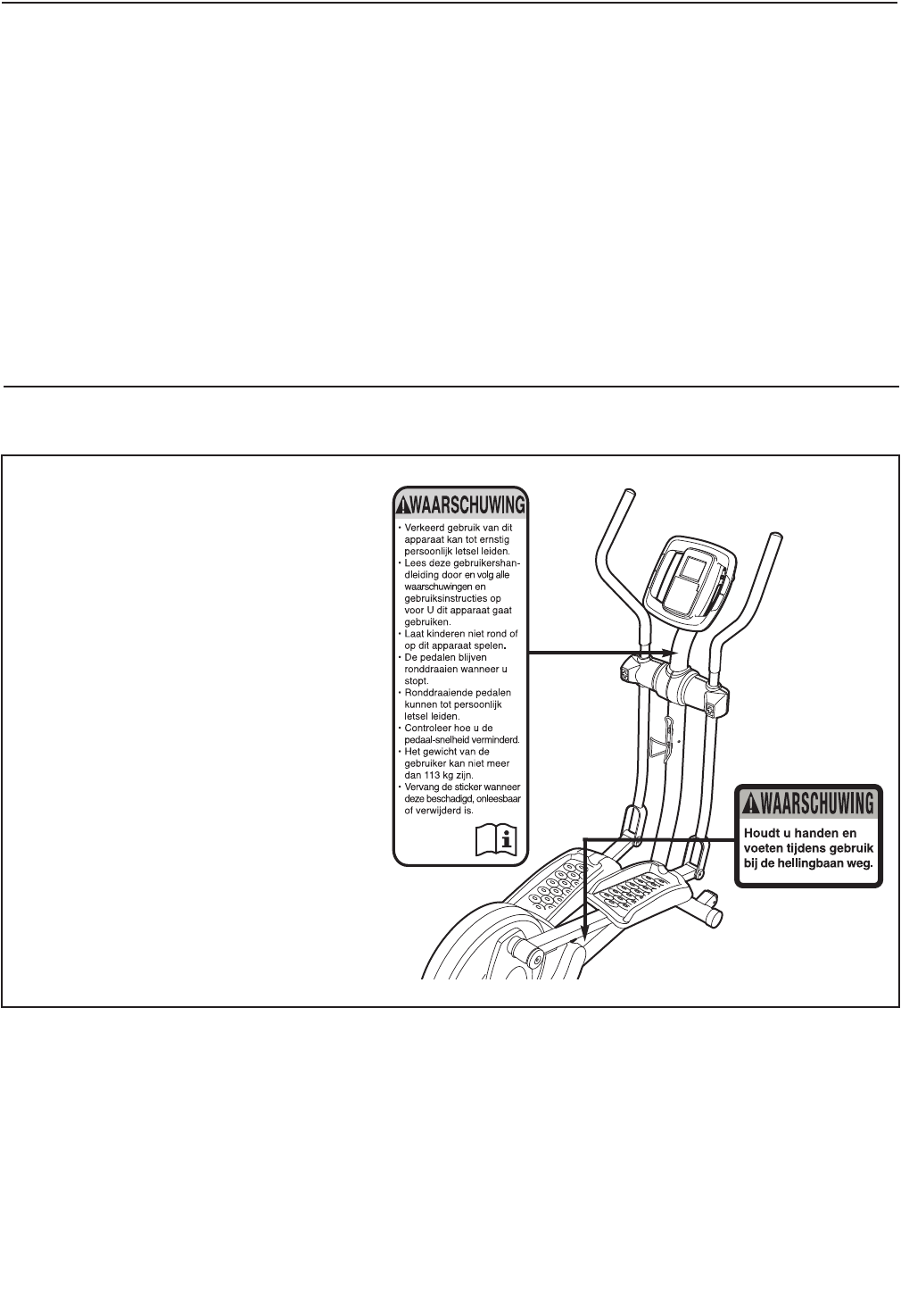 deze handleiding en alle waarschuwingen op uw elliptische trainer voordat u deze gebruikt om het