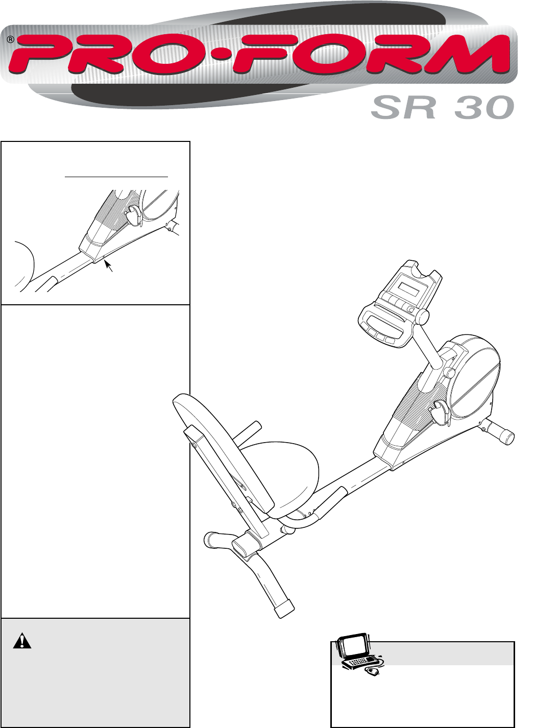• The NAME of the product (PROFORM®SR 30 exercise cycle)