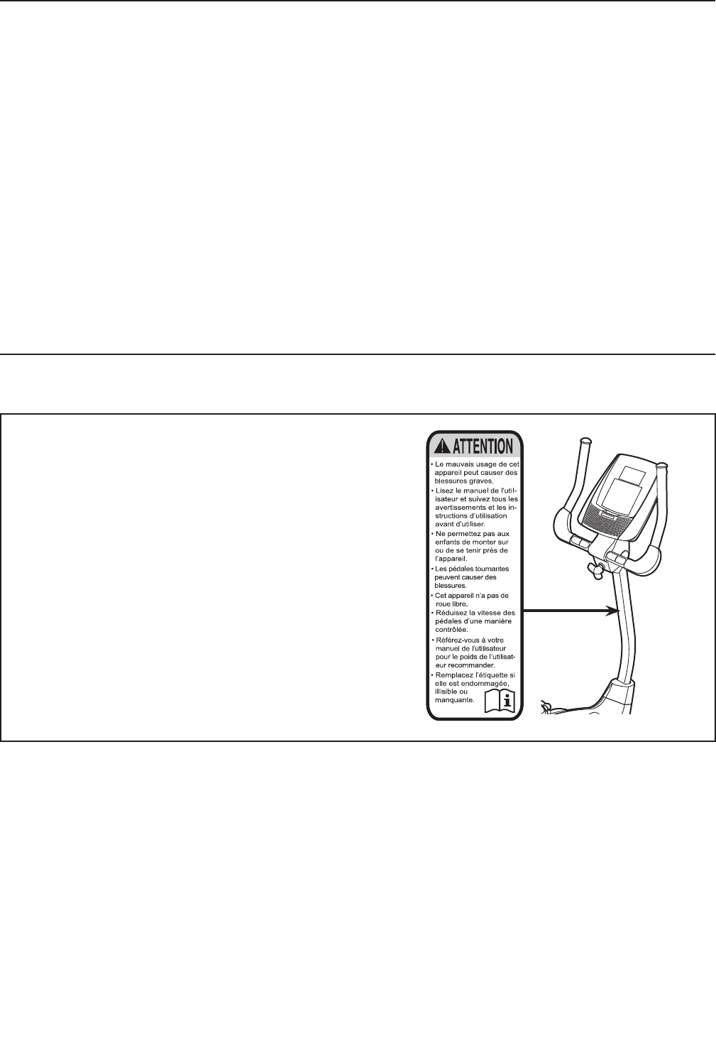 se trouvant sur l’appareil, avant d’utiliser votre vélo d’exercice. ICON ne peut être tenu responsable