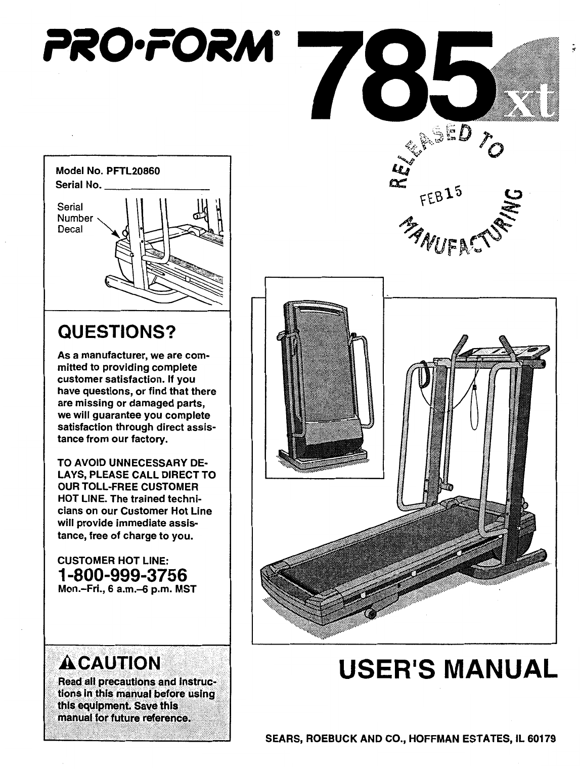 Proform Pftl20860 785 Xt Treadmill Users Manual