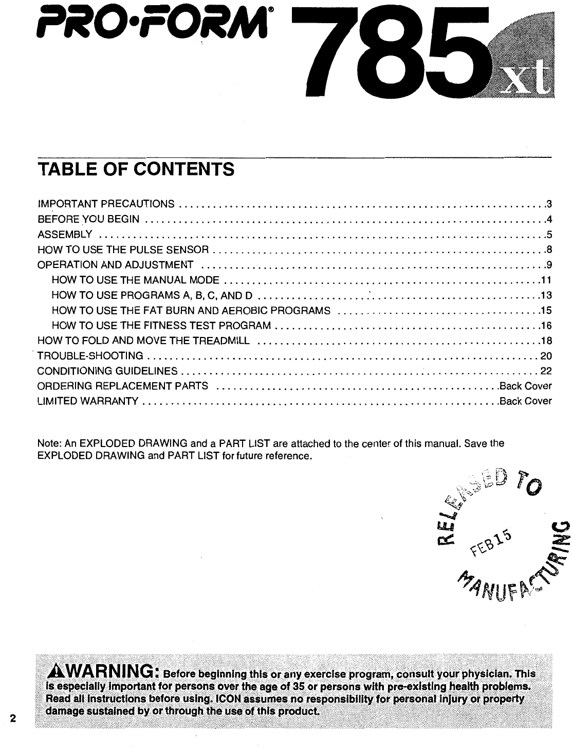 : Proform Proform-Pftl20860-785-Xt-Treadmill-Users-Manual-701559 proform-pftl20860-785-xt-treadmill-users-manual-701559 proform pdf