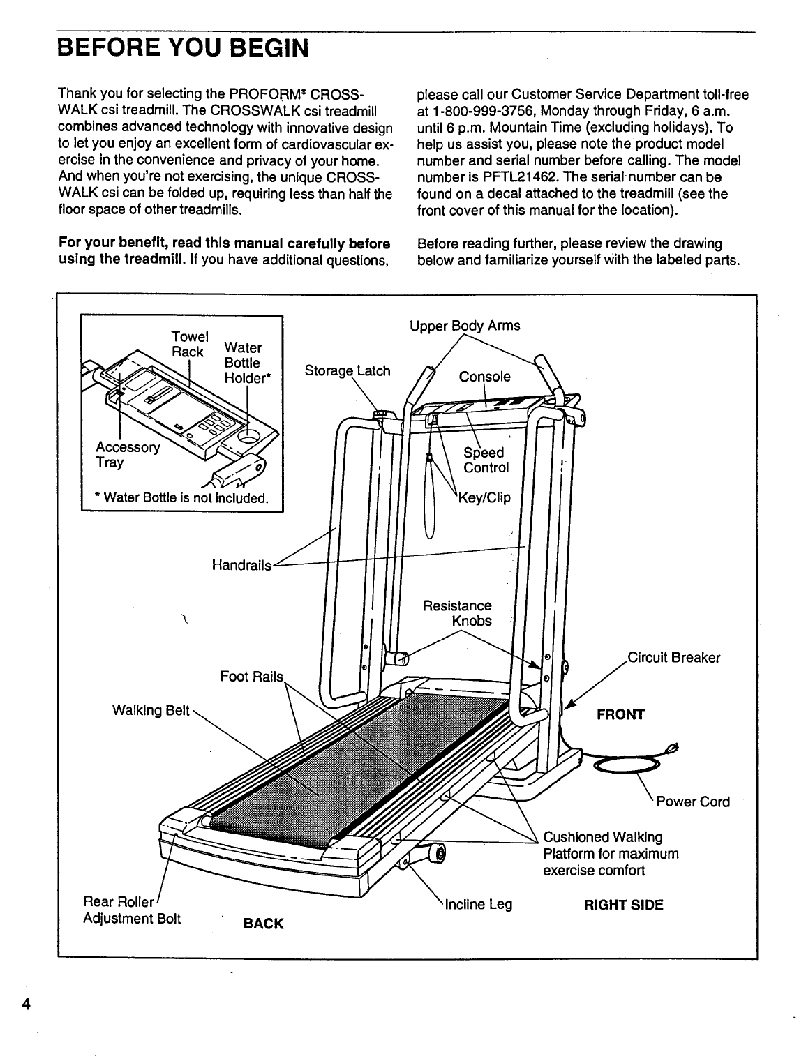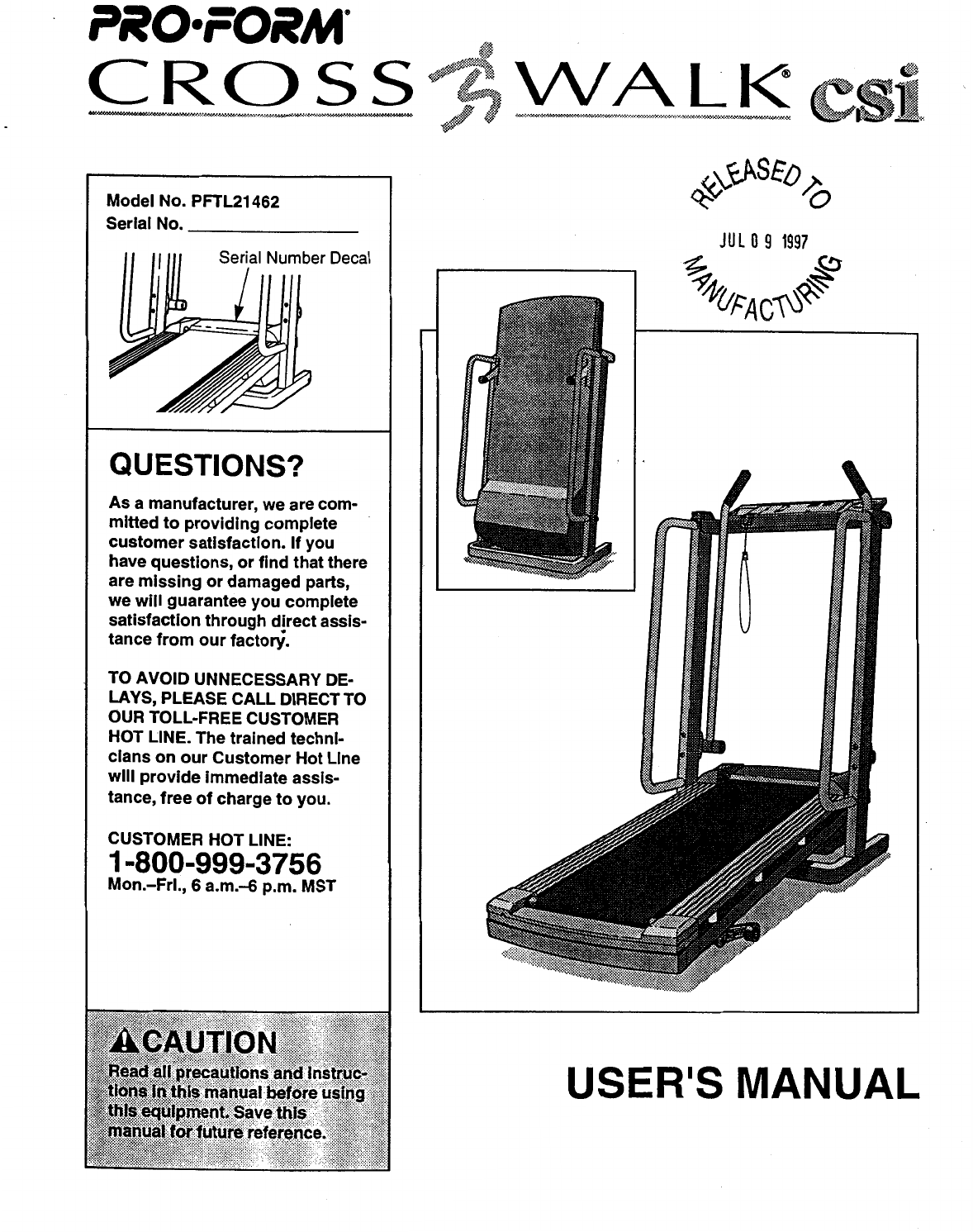 Proform Pftl21462 Crosswalk Csi Treadmill Users Manual