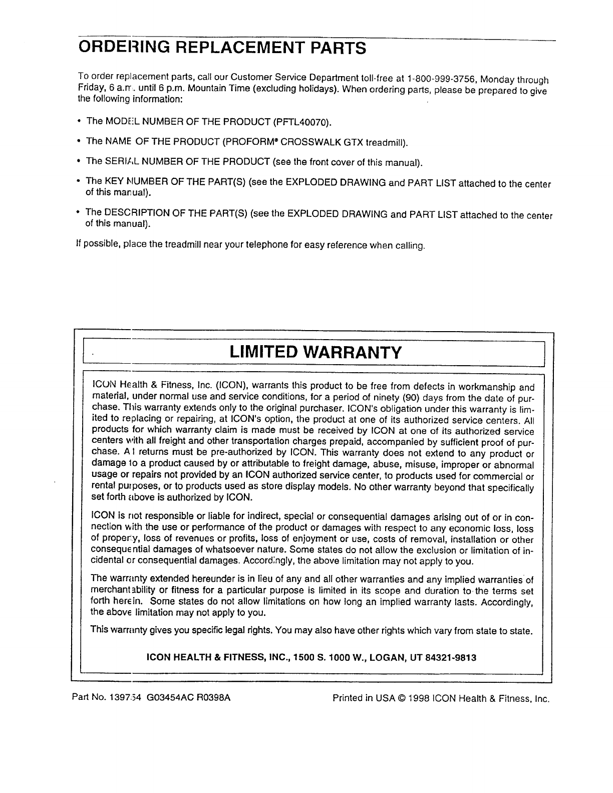 : Proform Proform-Pftl40070-Crosswalk-Gtx-Treadmill-Users-Manual-701691 proform-pftl40070-crosswalk-gtx-treadmill-users-manual-701691 proform pdf