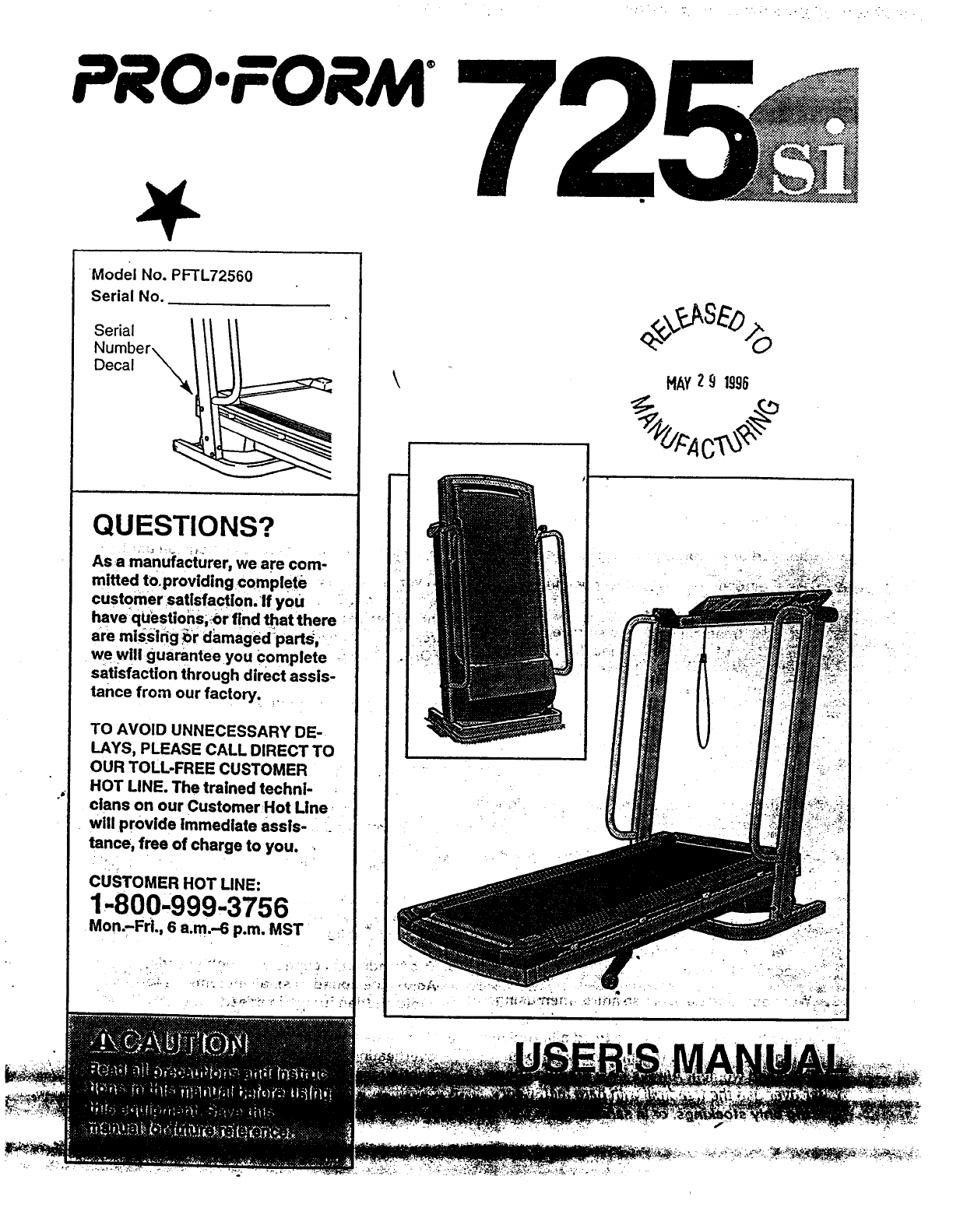 Proform Pftl72560 725Si Treadmill Users Manual