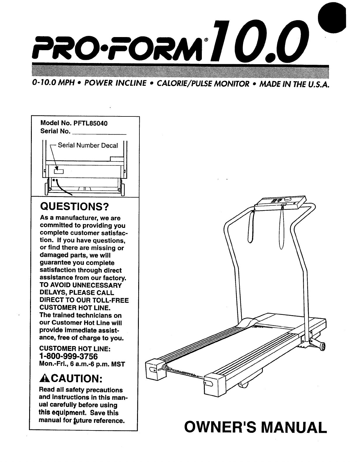 Proform Pftl85040 10 0 Treadmill Users Manual