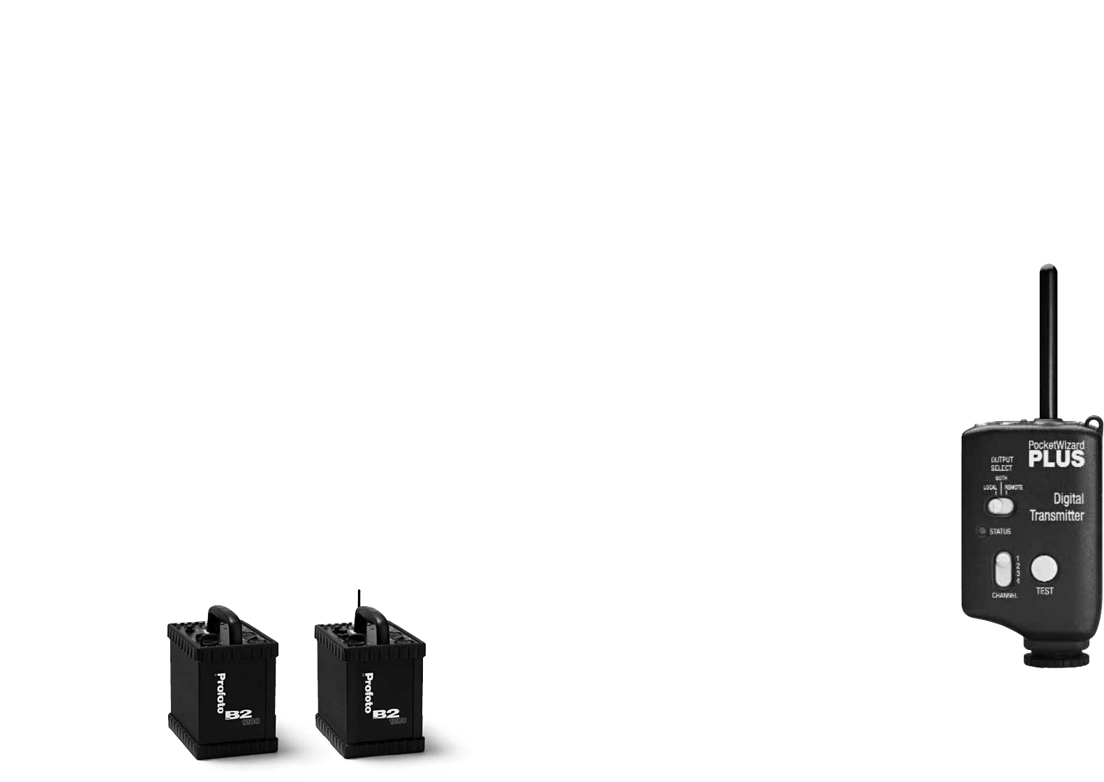 The PocketWizard Plus transmitter (4 channels) for wireless synchronization is available