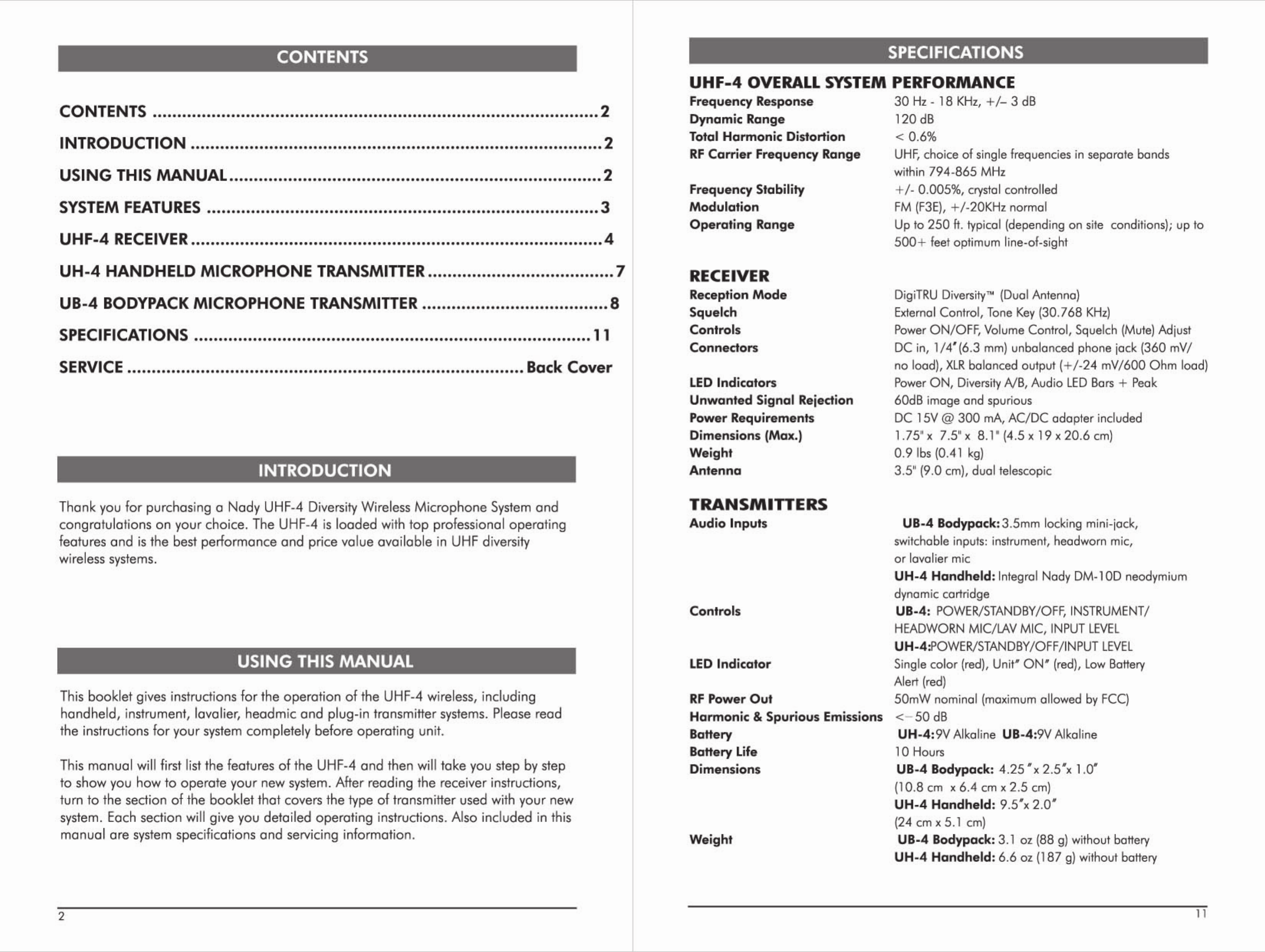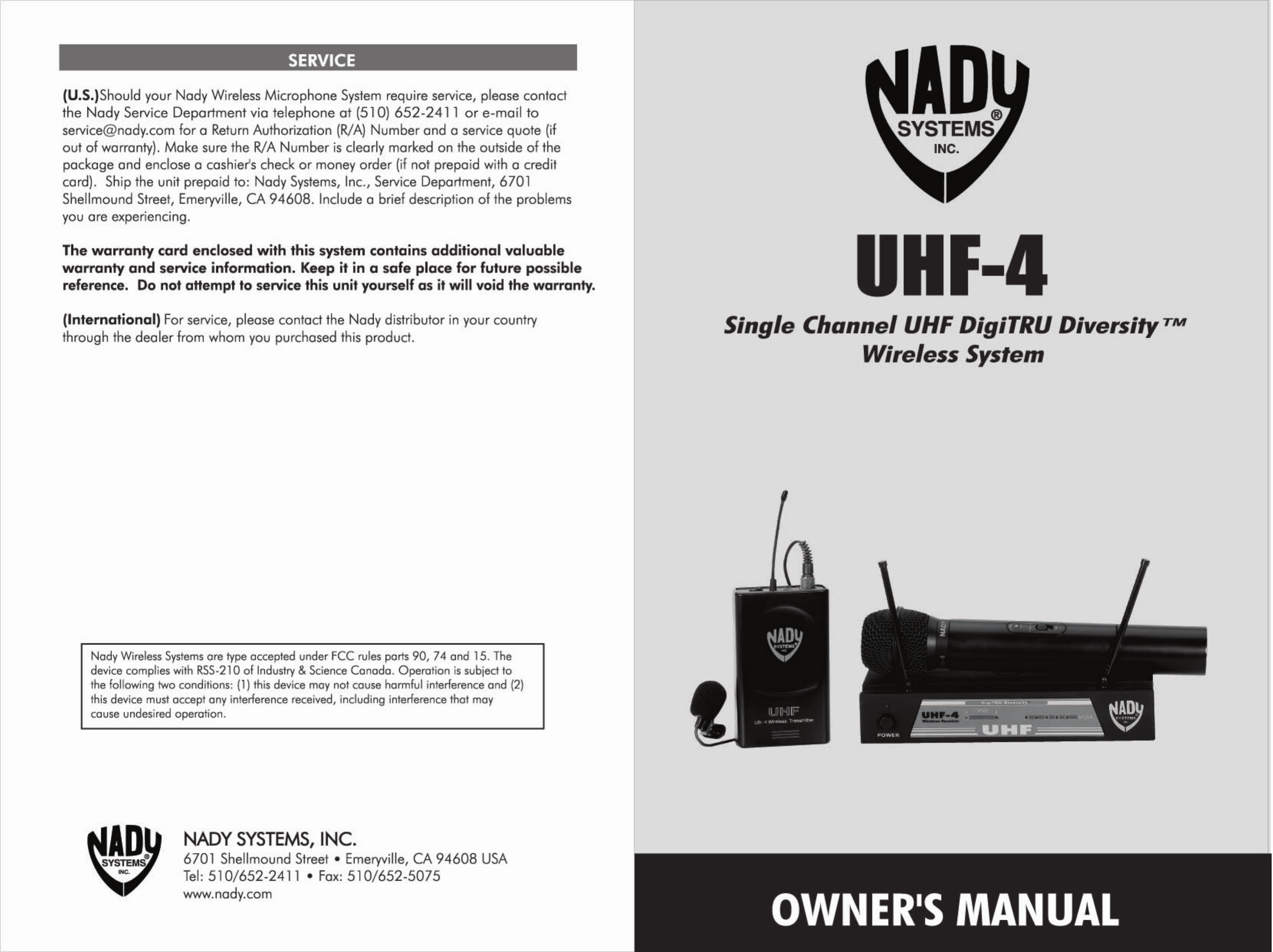 Nady Systems Inc Wireless Microphone Users Manual