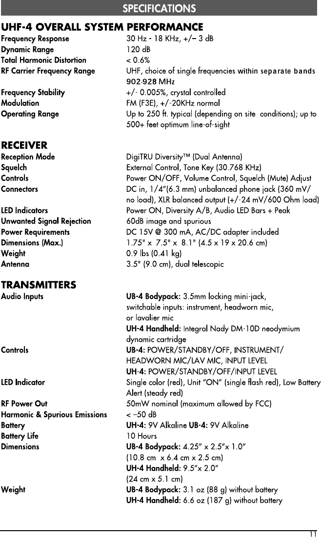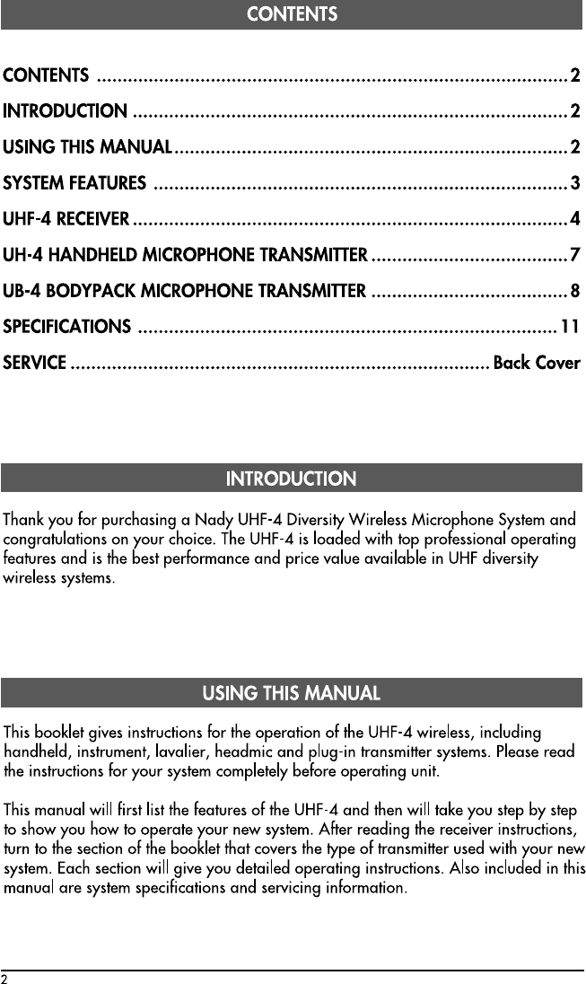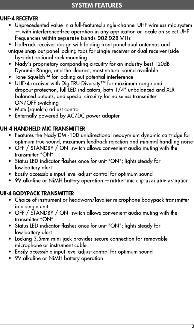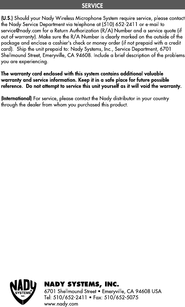 Nady Systems Inc WIRELESS MICROPHONE Users Manual