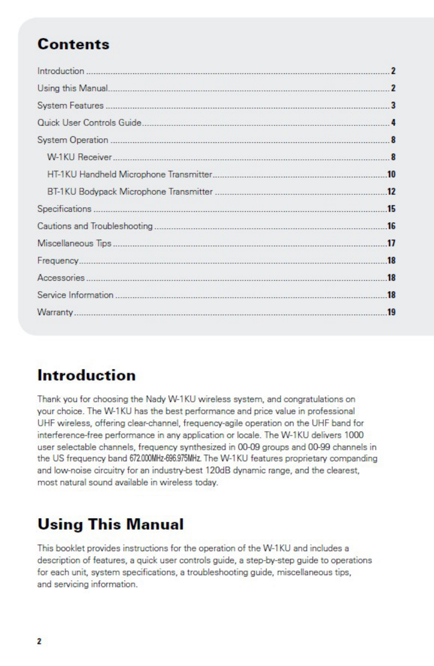Nady Systems Inc WIRELESS MICROPHONE Users Manual