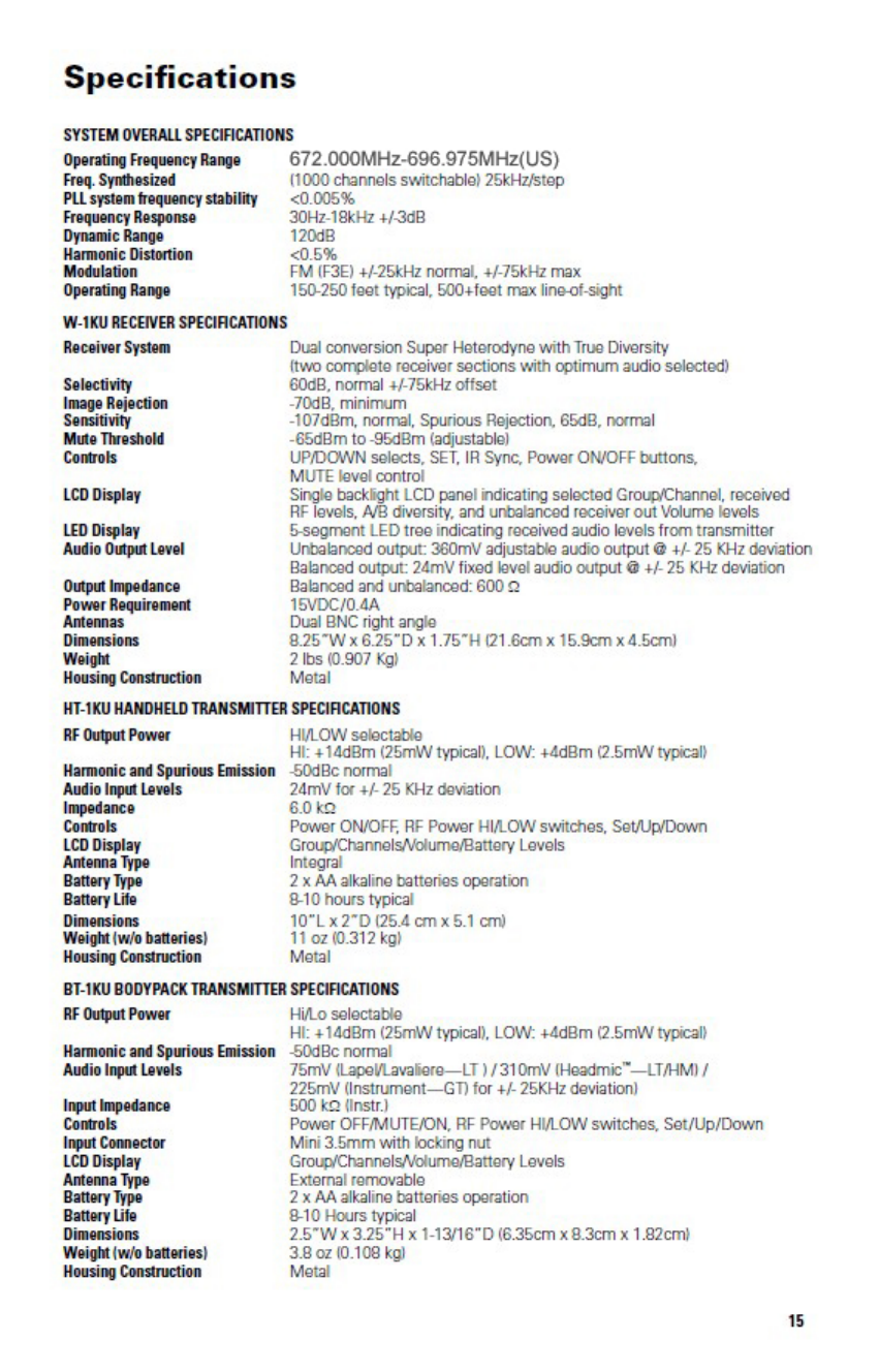 Promark 9E3W1KUB WIRELESS MICROPHONE User Manual