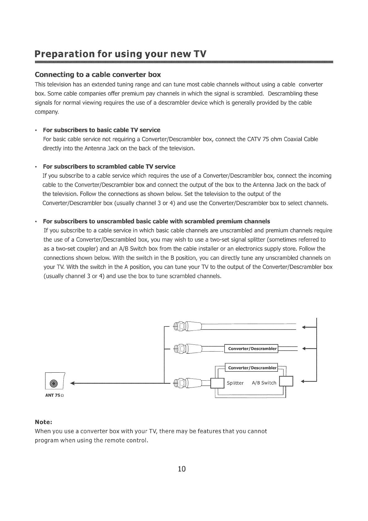 Connecting to a cable converter box ................................................................... 10