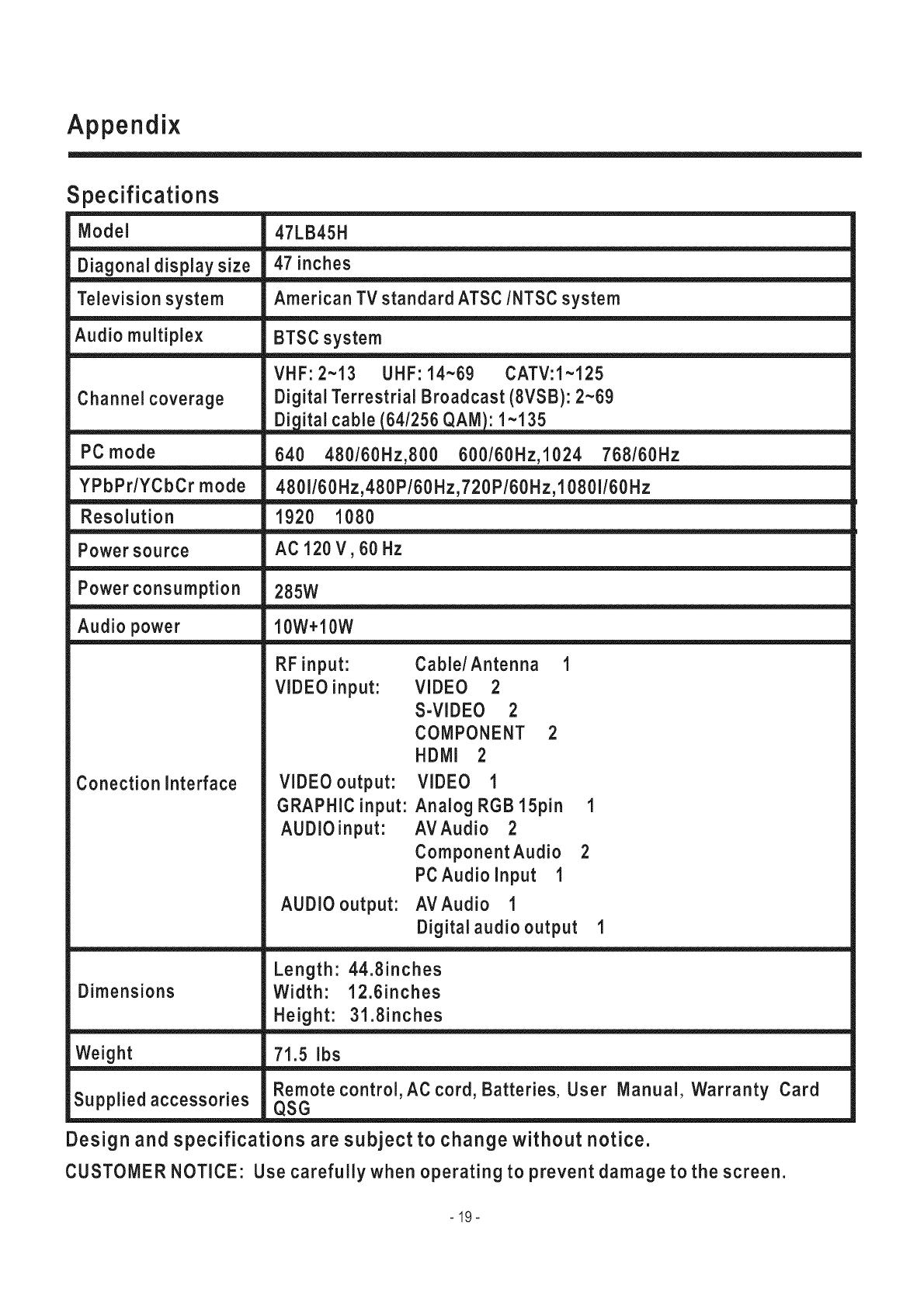 User Manual: Proscan 47LB45H 47LB45H PROSCAN LCD TELEVISION - Manuals and Guides View the owners manual for your PROSCAN LCD TELEVISION #47LB45H. Home:Electronics Parts:Proscan Parts:Proscan LCD TELEVISION Manual