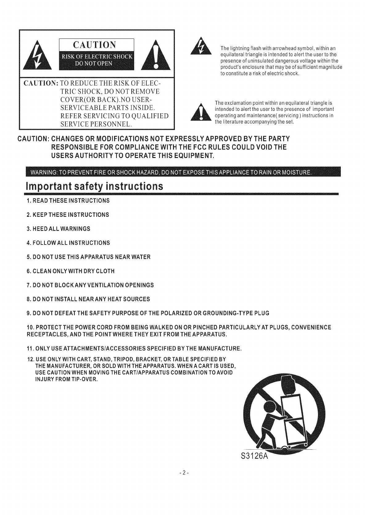 12, USE ONLY WITH CART, STAND, TRIPOD, BRACKET, OR TABLE SPECIFIED BY