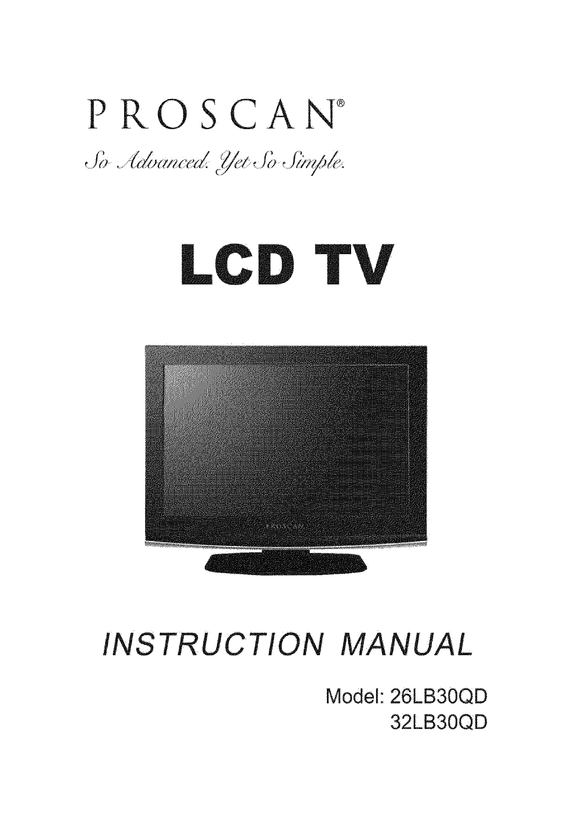 26LB30QD 26LB30QD PROSCAN LCD TELEVISION - Manuals and Guides L0807524 View the owners manual for your PROSCAN LCD TELEVISION #26LB30QD. Home:Electronics Parts:Proscan Parts:Proscan LCD TELEVISION Manual