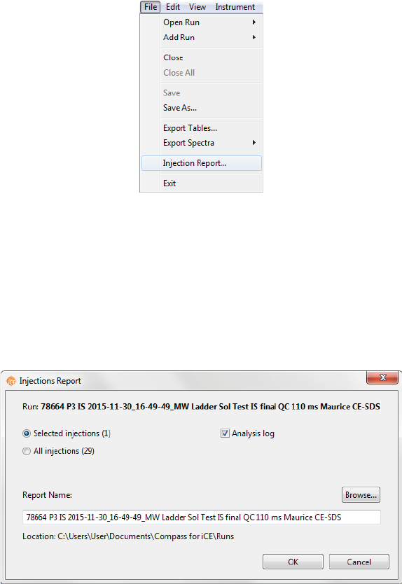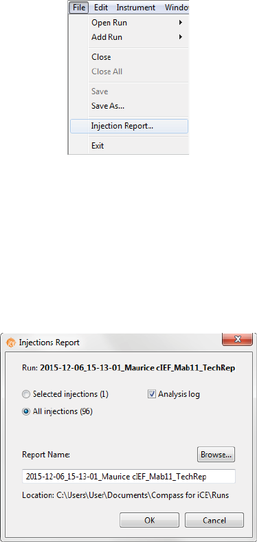 individual injections as PDF files. You can also export the run history with all analysis events.