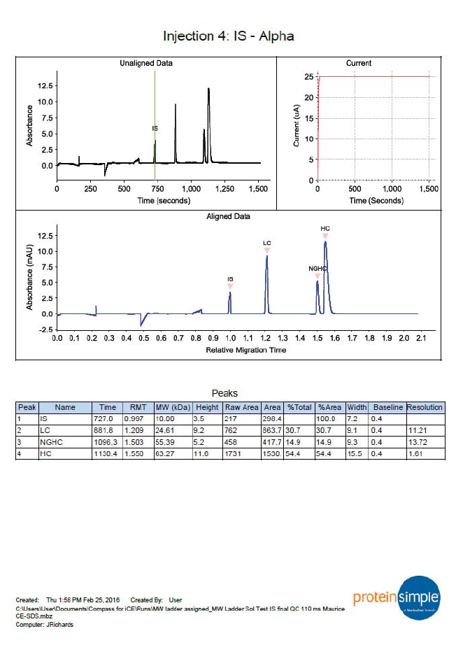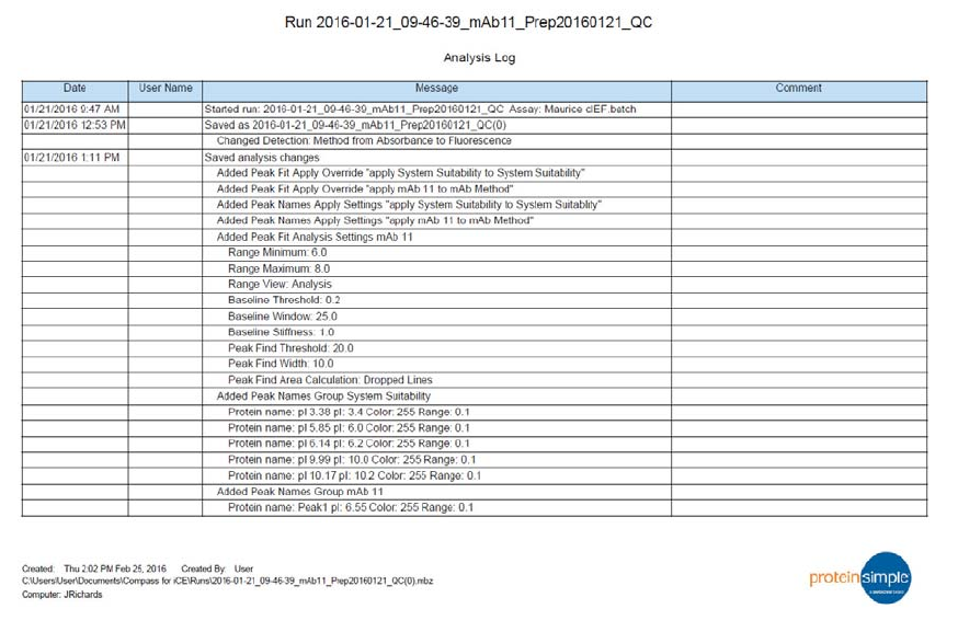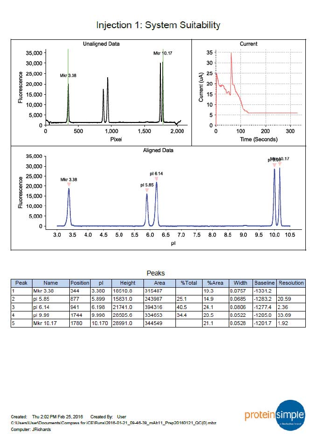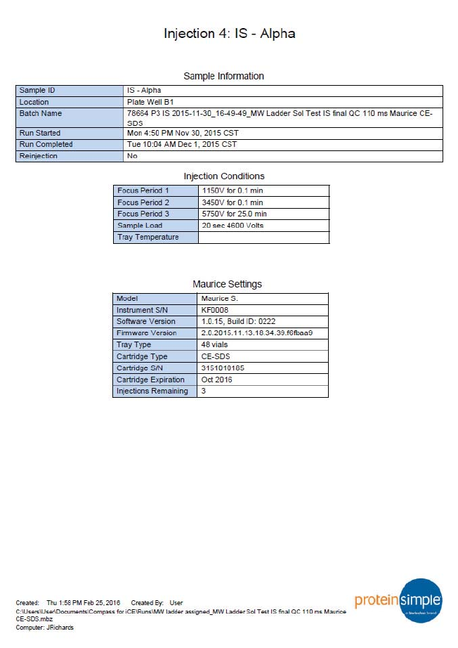 •Injection Report - Exports the raw and analyzed data, IV plot, peaks table, sample and system info for