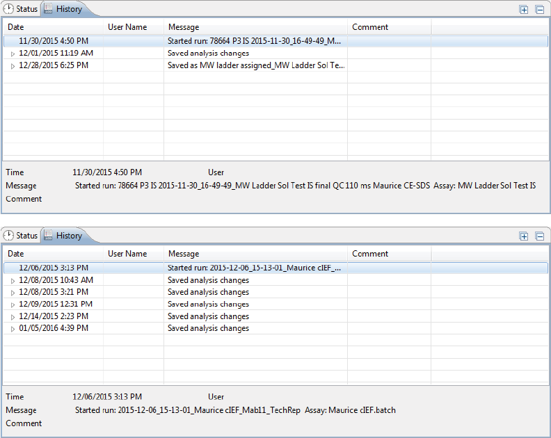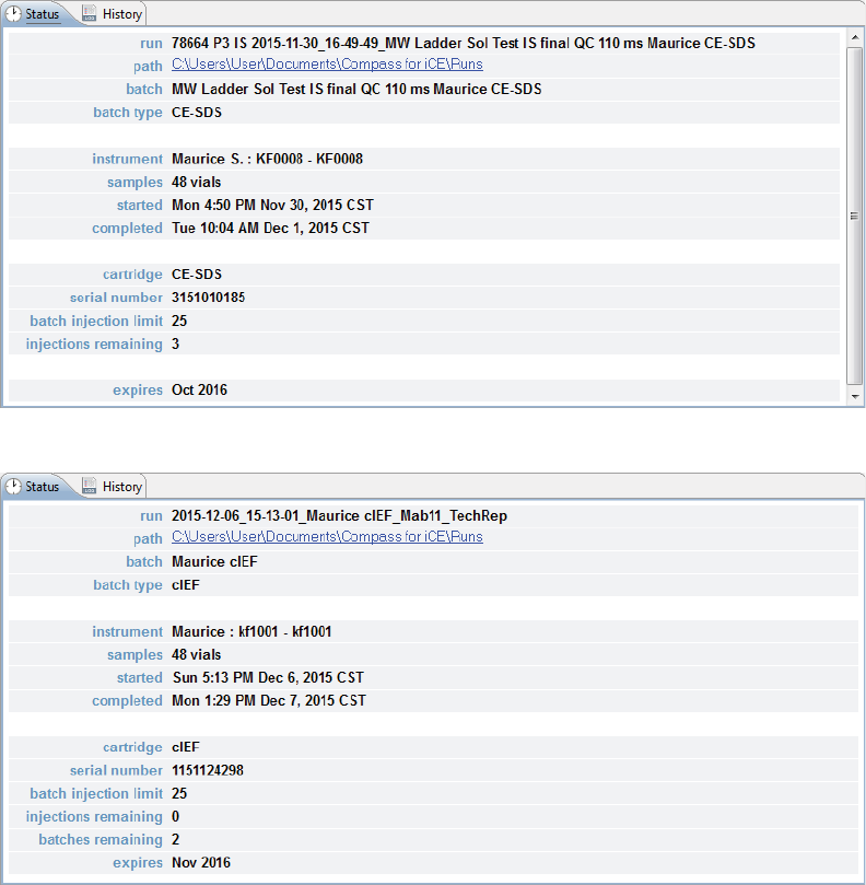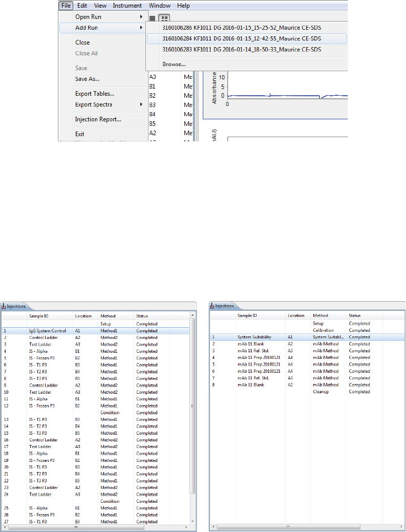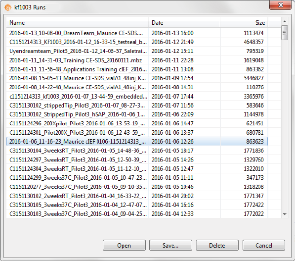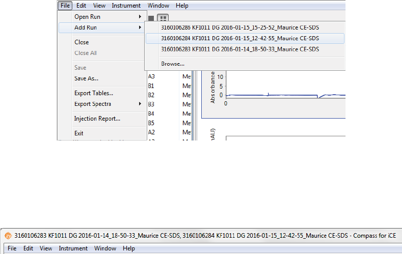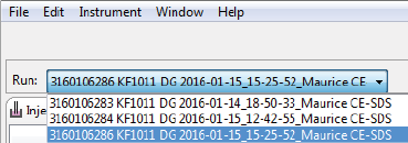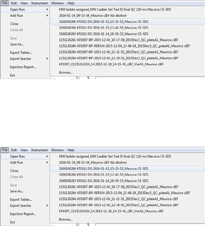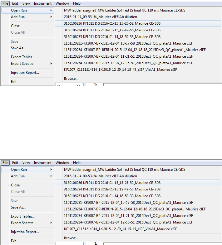 open (cIEF or CE-SDS), so the run files displayed are only for that application. Select one of these runs or