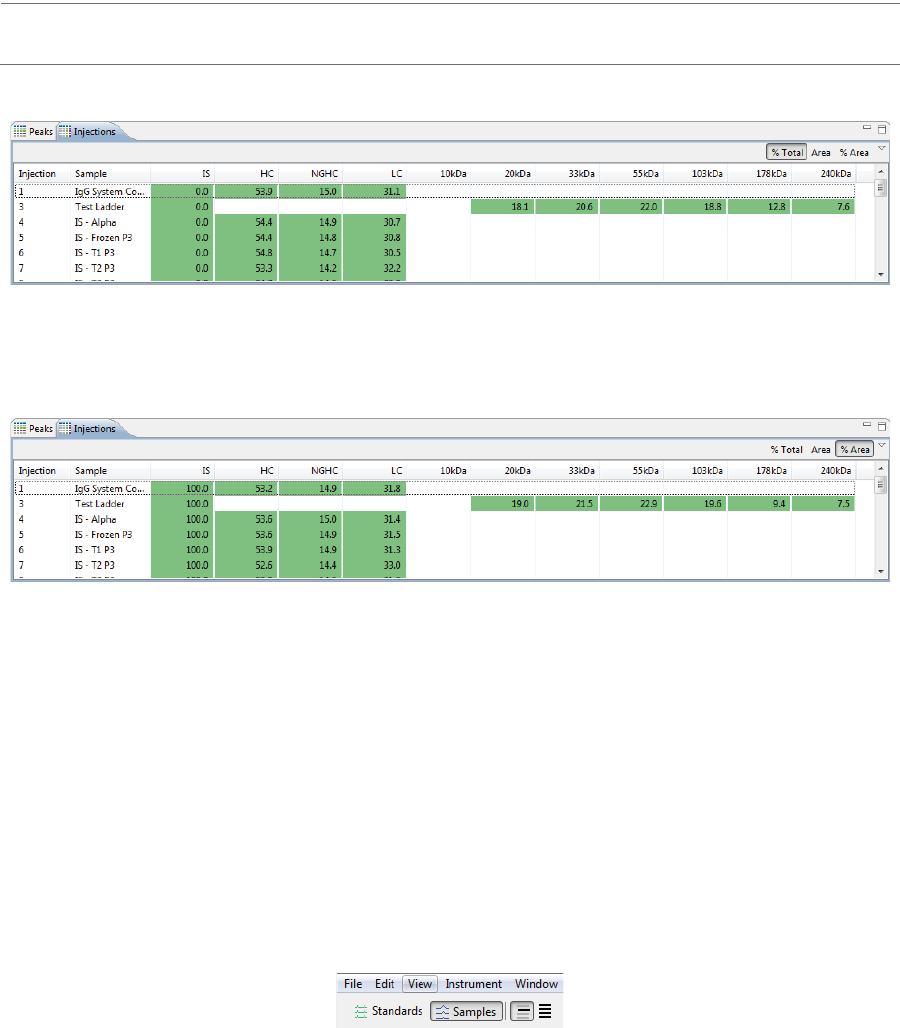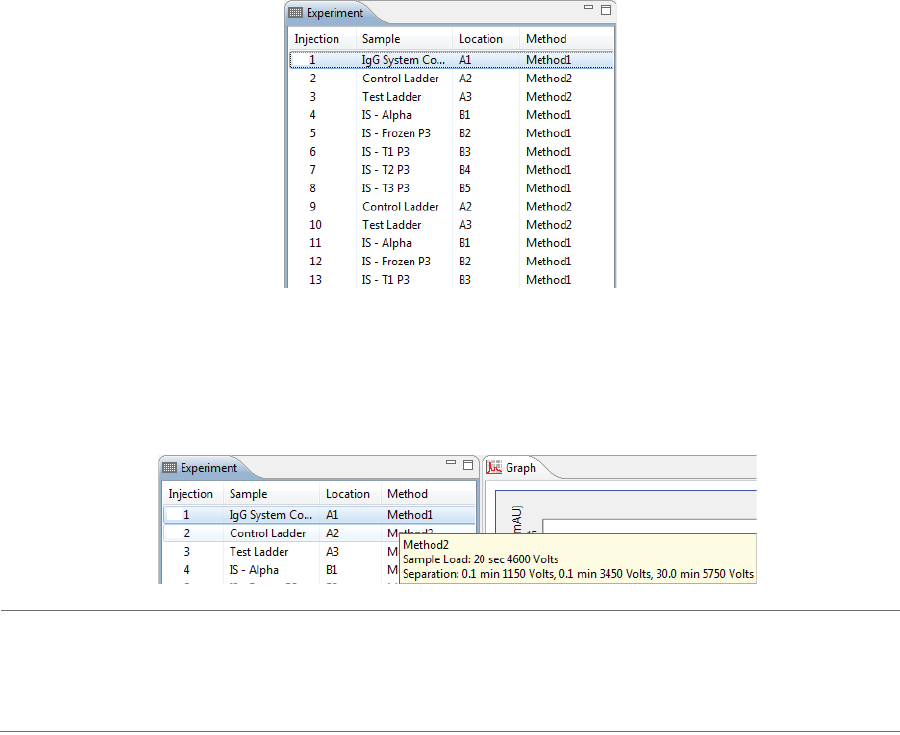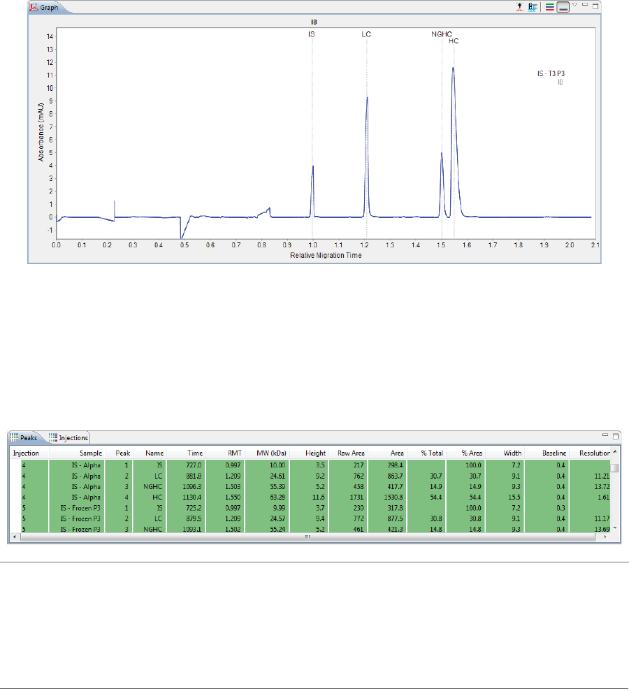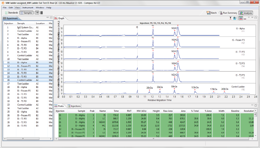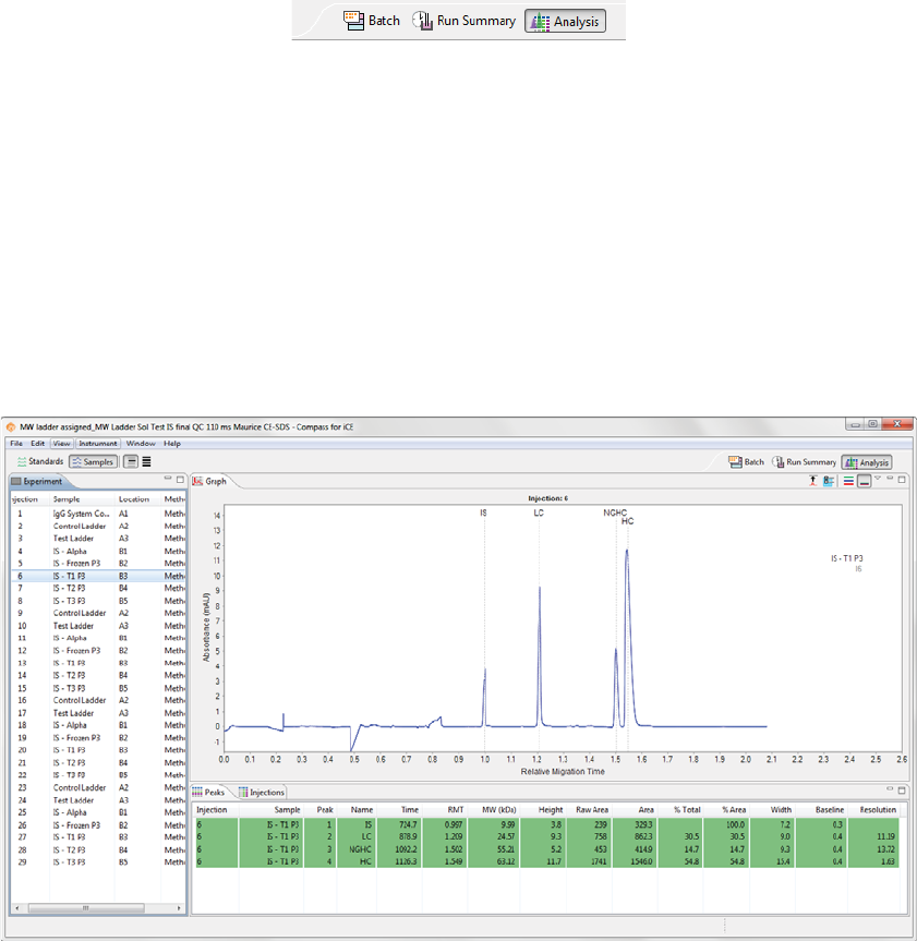 • Clicking on an injection displays its data in the Focus Series (cIEF) or Separation (CE-SDS) and IV Plot