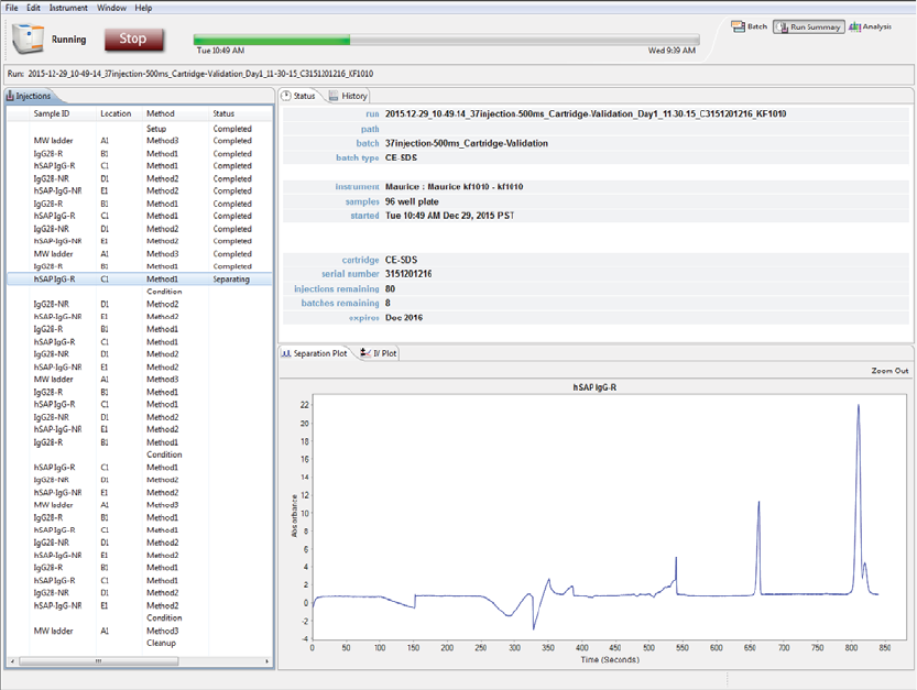 You can use the Run Summary screen to monitor the stats of a batch in progress, see the CE-SDS separation