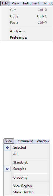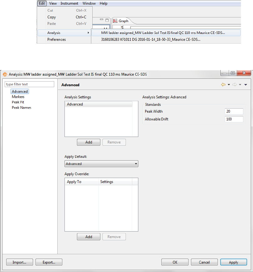 2. Select Edit in the main menu and click Default Analysis (Batch screen) or Analysis (Analysis screen).