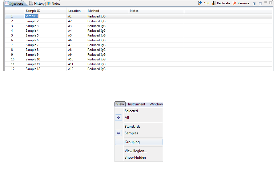 •To select sequential injections: Select the first injection, then hold the Shift key and select the