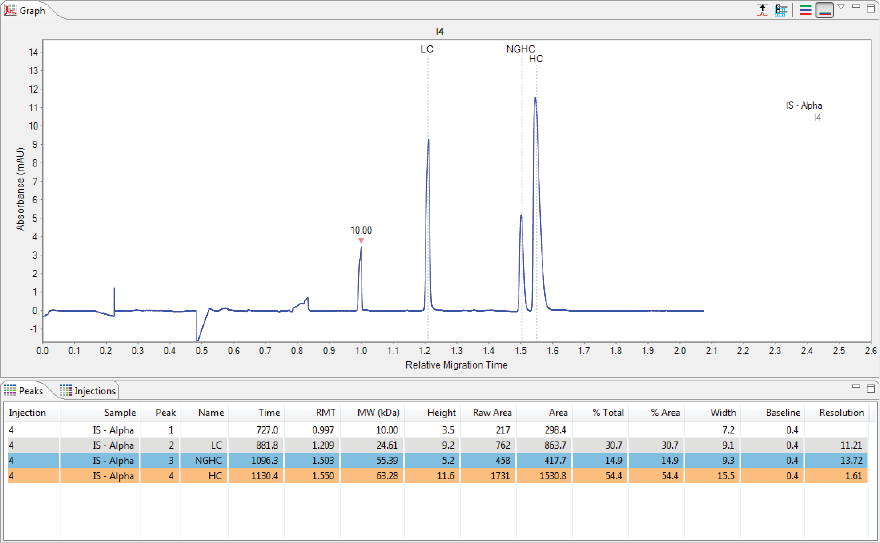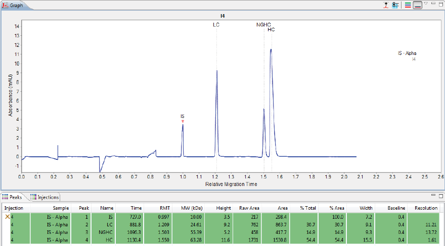 •Separation Plot (CE-SDS only)- Lets you view the raw protein separation in the capillary for each