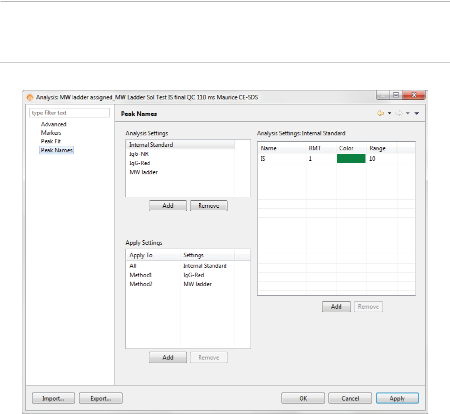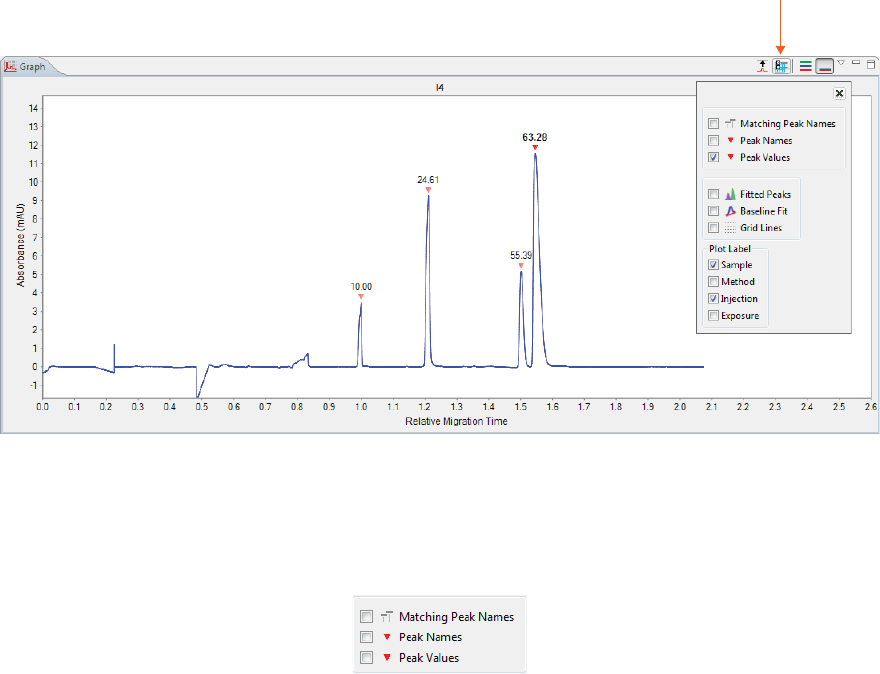 9. Click OK to save changes. Named peaks will be identified with a peak name label in the electrophero-