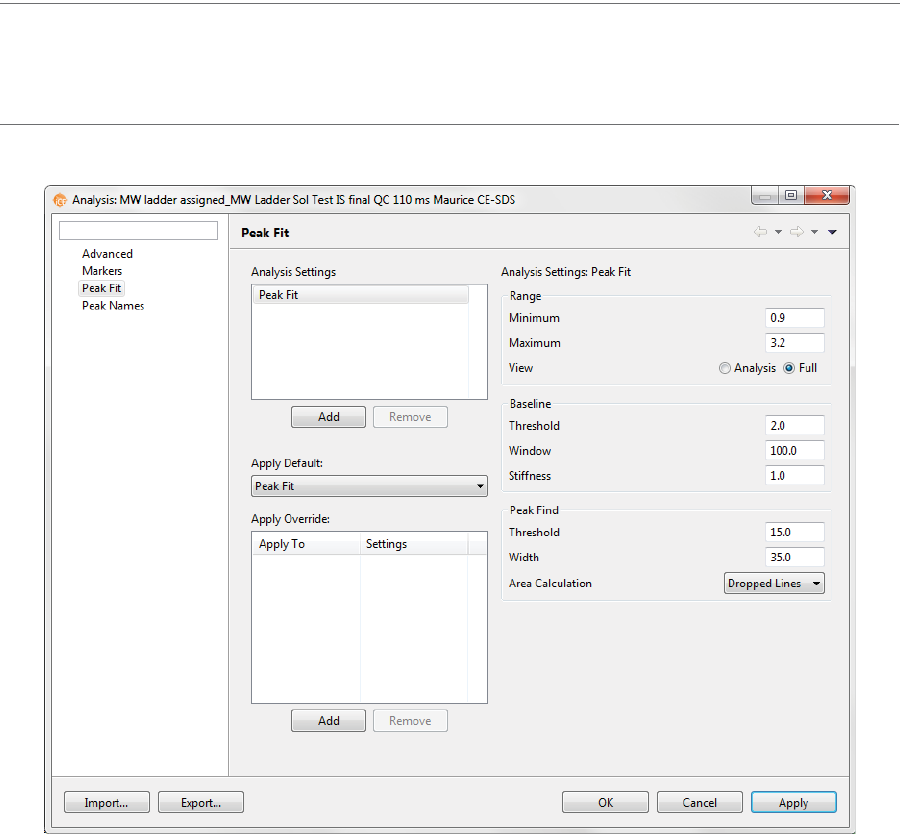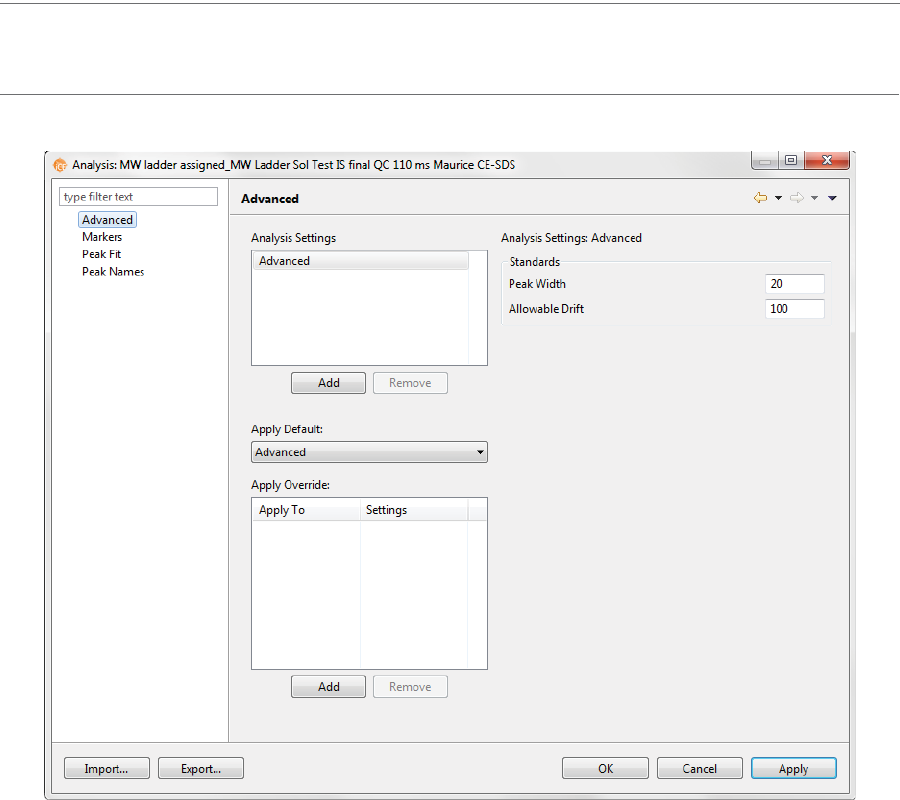 NOTE: Analysis settings are run-file specific. But, settings can be imported or exported for use with other