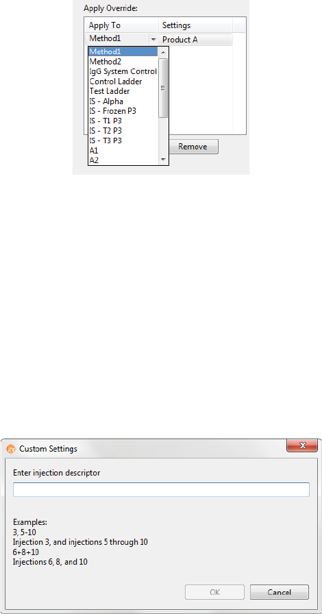 tings can be applied to methods, injections, sample names or other attributes in the run data.