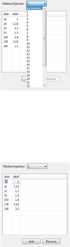 5. Click in the first cell in the RMT column and enter the relative migration time for the sample protein.