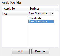 6. If you need to change the peak names group used for a data set, click the cell in the Settings column