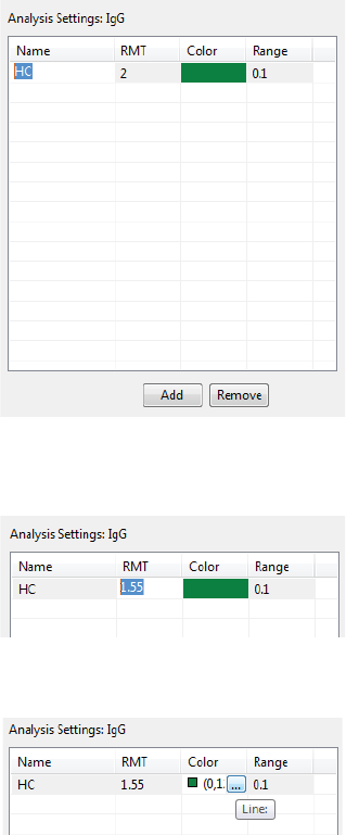 10. To add another sample protein, click Add under the peak table. Repeat the previous steps for other sam-