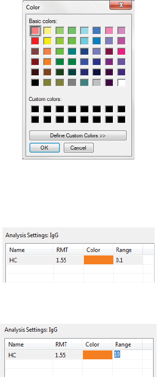 Analysis screen. Click a color or define a custom color and click OK. The color selection will update in the