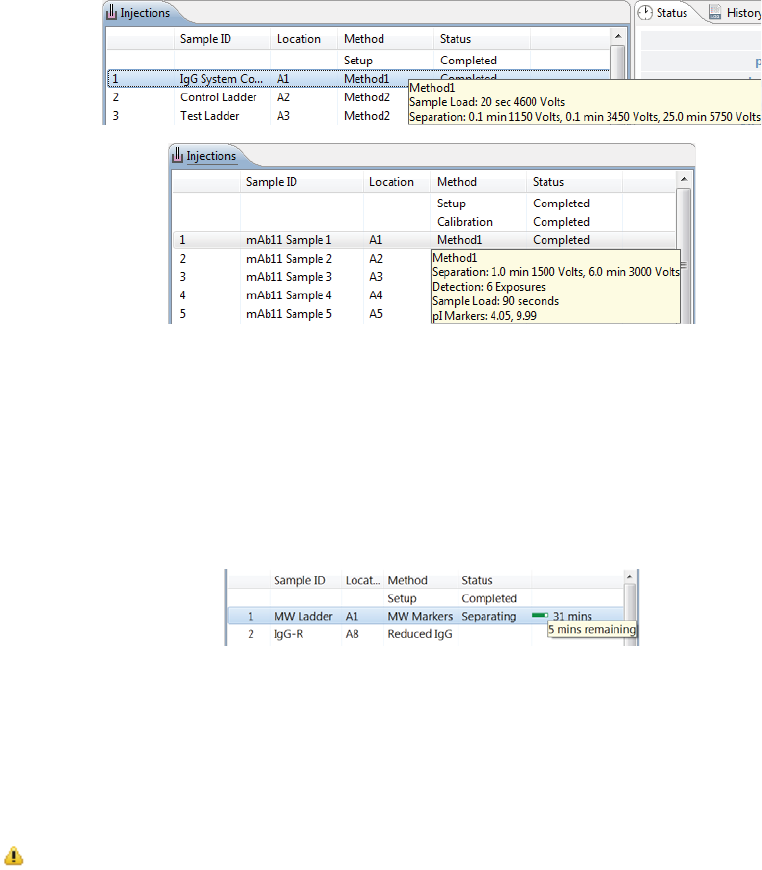 •Running for Setup, Conditioning (CE-SDS only) and Cleanup protocols that are in progress