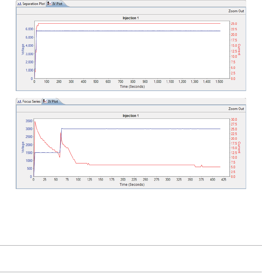 •IV Plot - Lets you view plots of the total current and voltage measured during the separation for each
