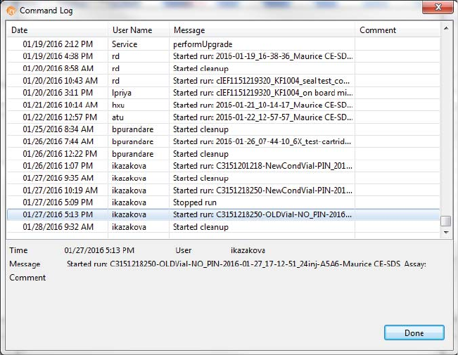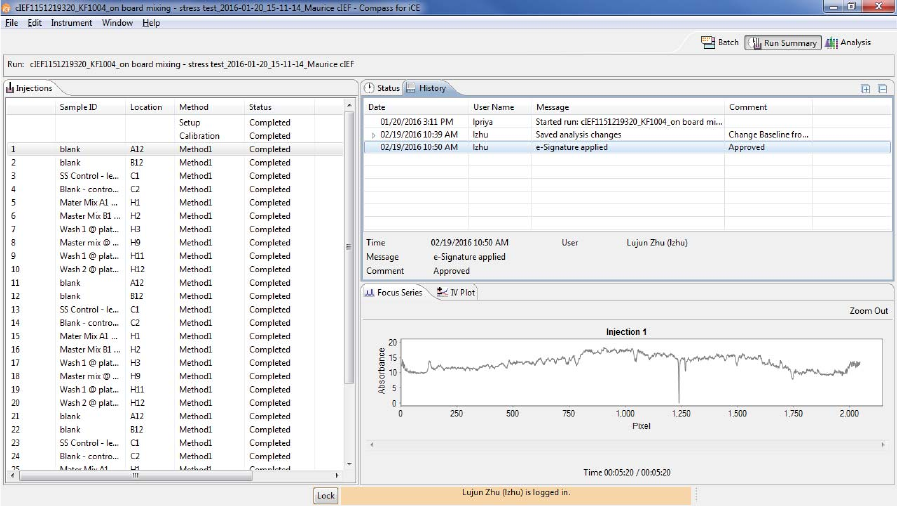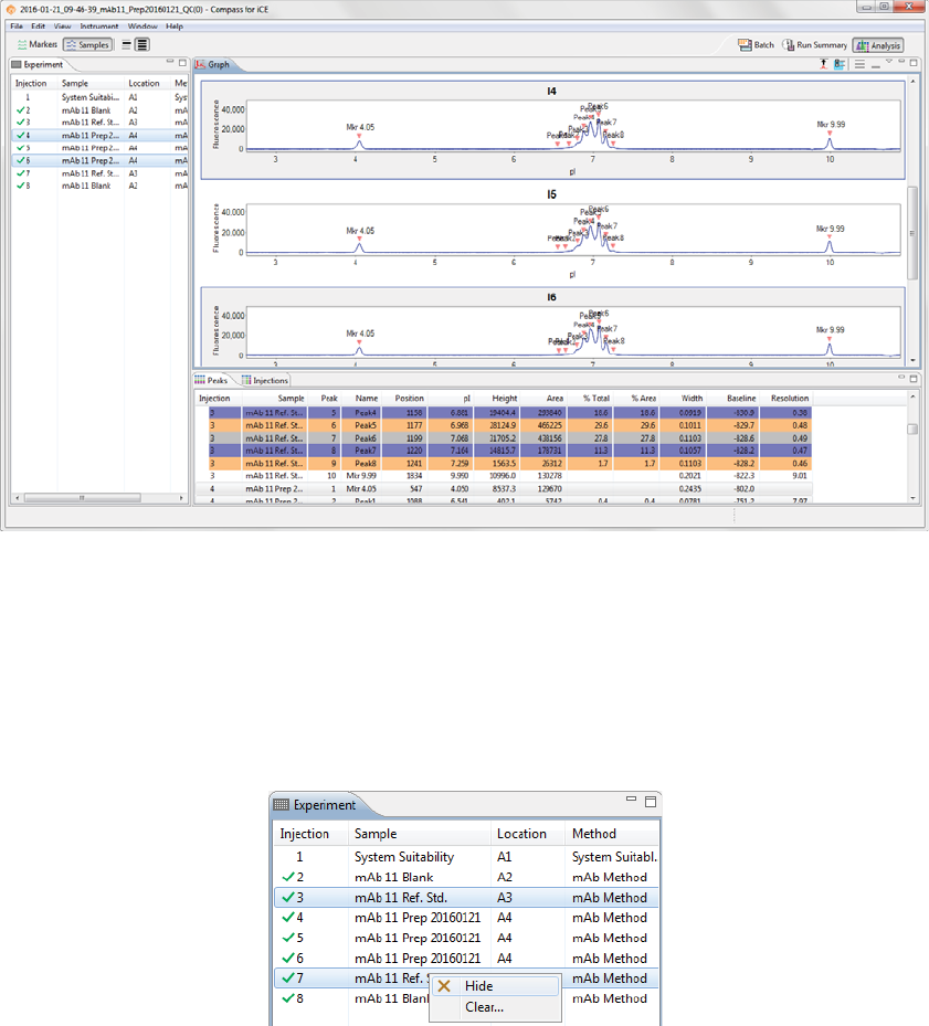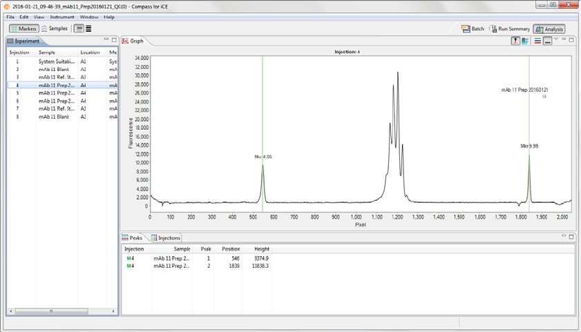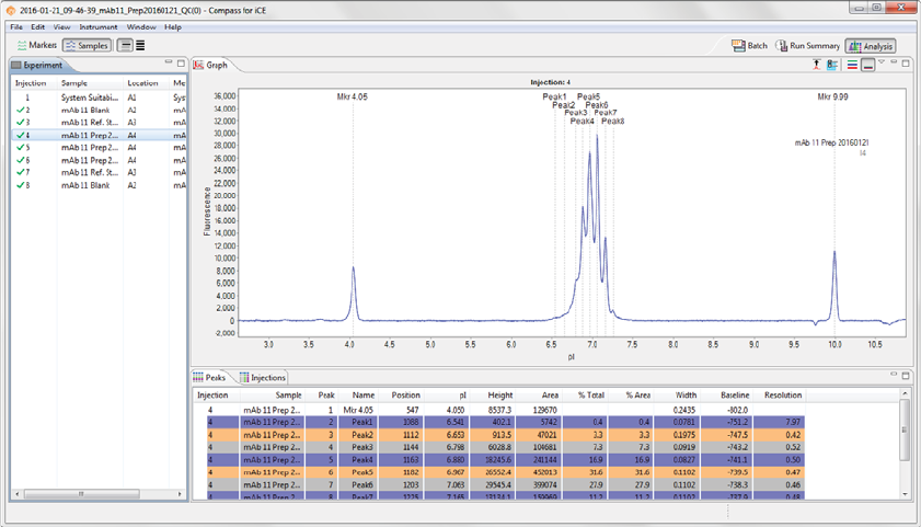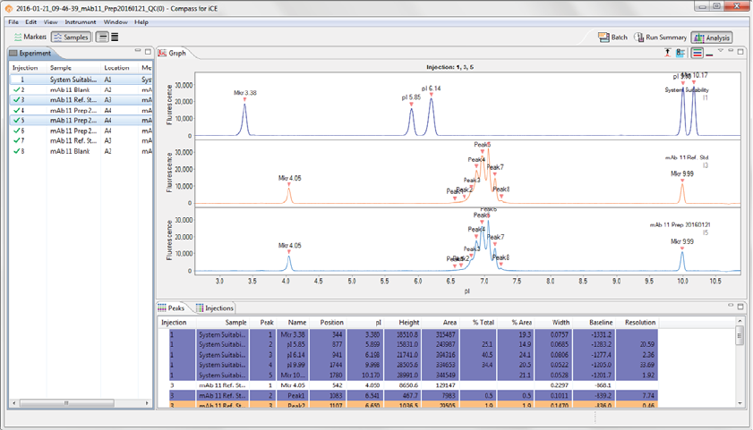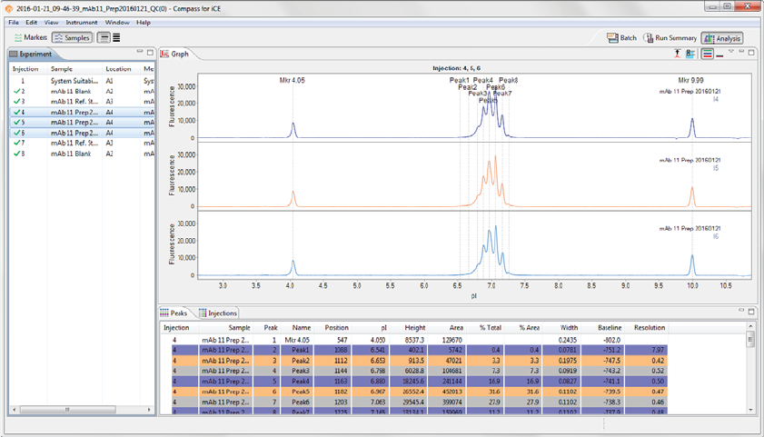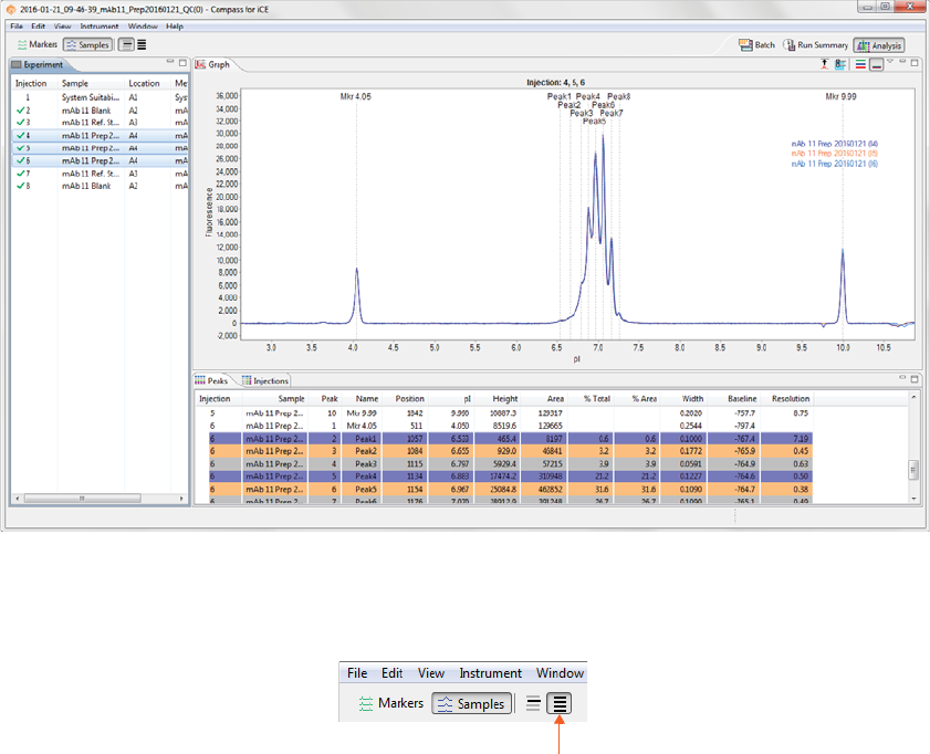 •Injections - Displays a list of the sample proteins Compass for iCE names automatically using the