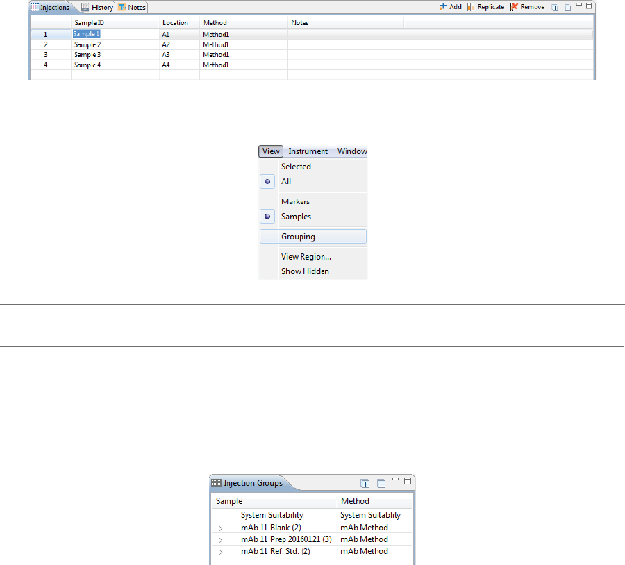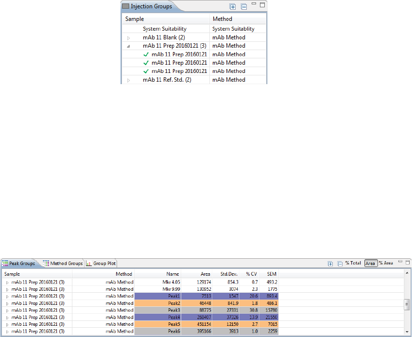 •Grouping - Displays data for injection groups.