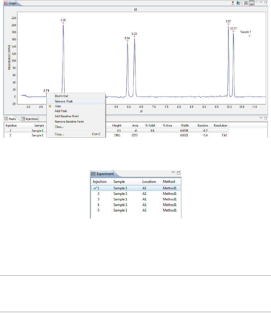 You can use the Analysis screen to view electropherograms and tabulated results for your injections. If any