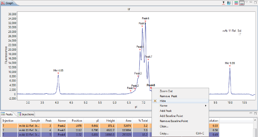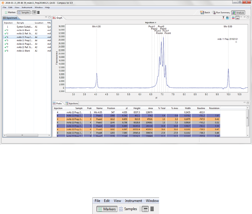 •Markers - Lets you view data just for the pI markers in your injections.