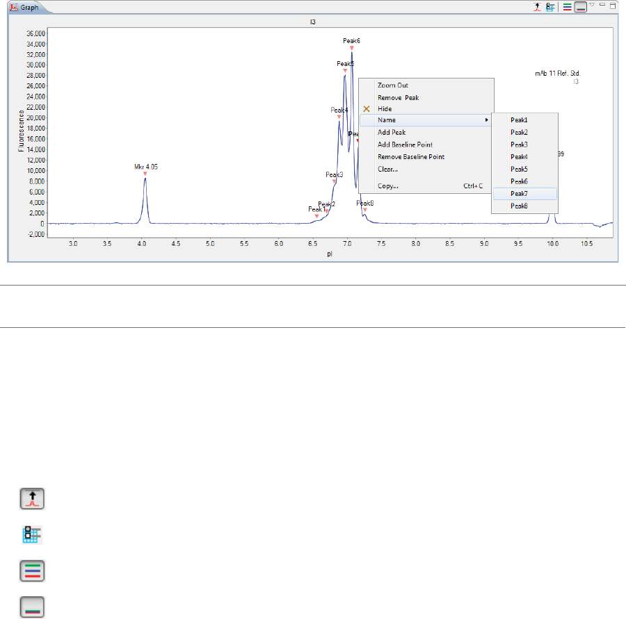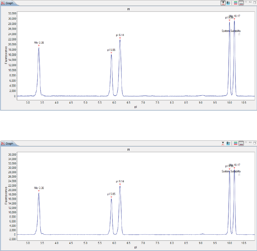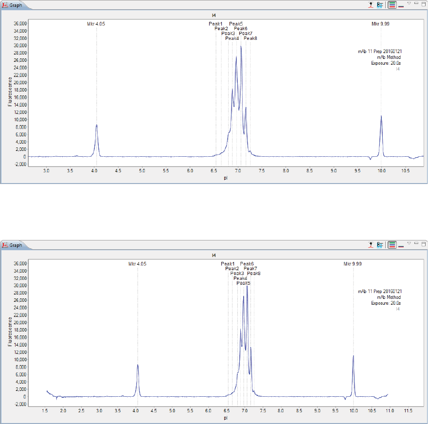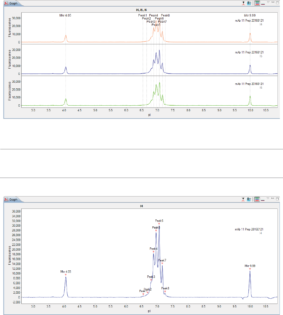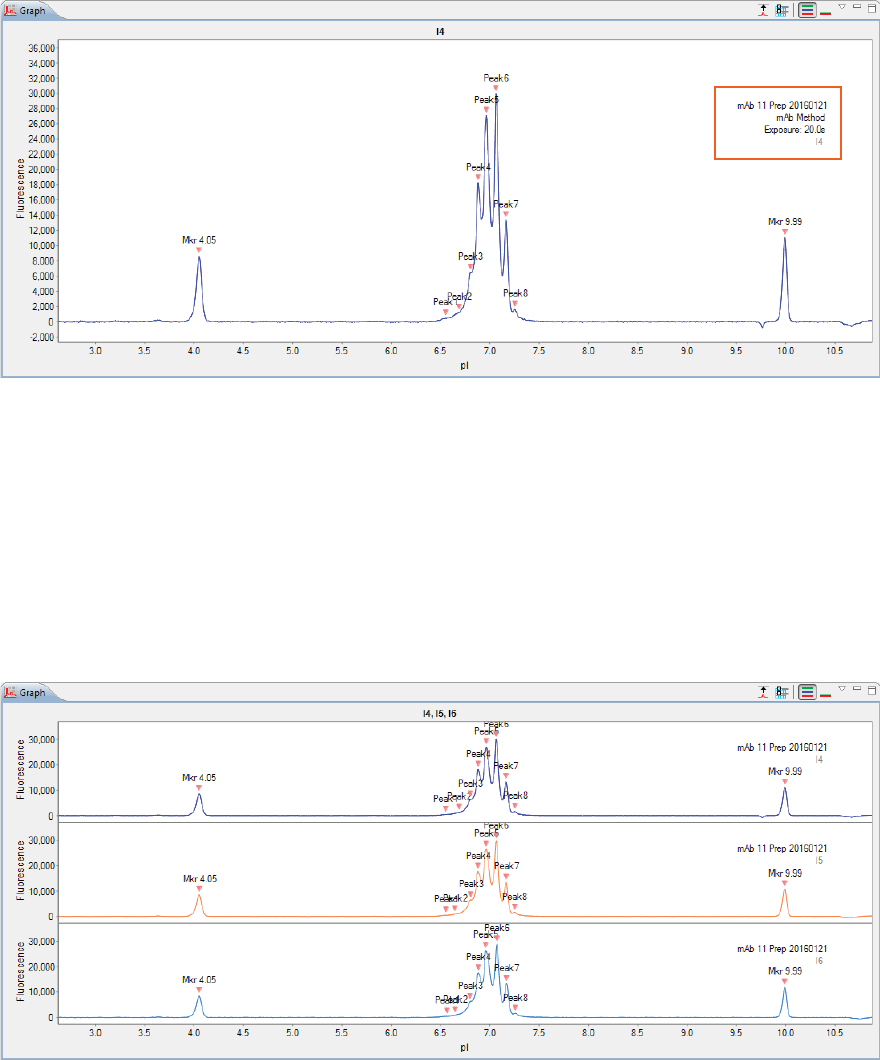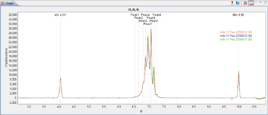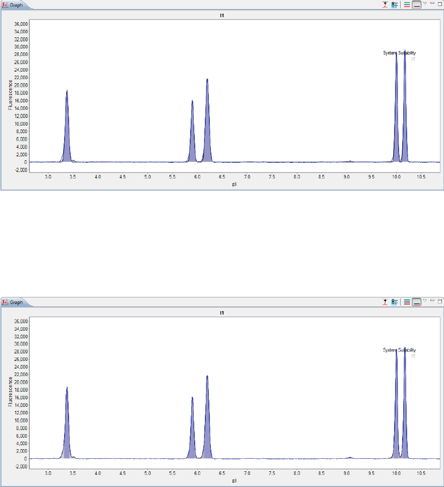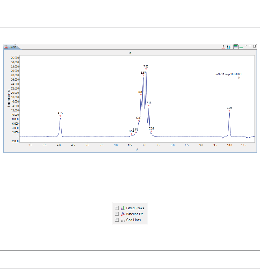 •Graph - Displays the electropherograms for sample proteins or pI markers.